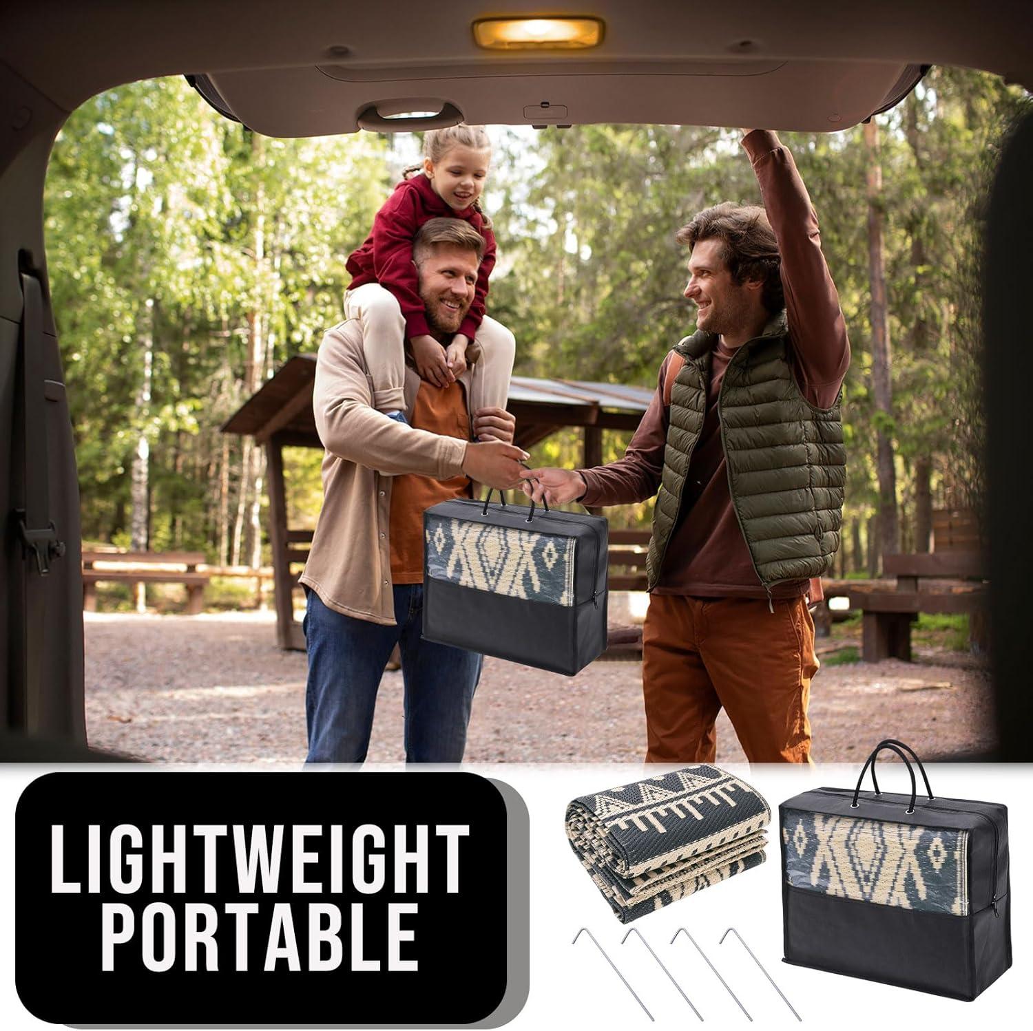 LIGHTWEIGHT & PORTABLE: The lightweight foldable construction makes this patio rug ultra-portable; take them anywhere from campouts to picnics without adding extra bulk; with a matching carry bag for easy transport and storage