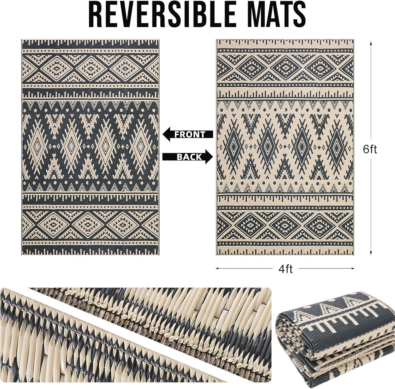 REVERSIBLE & VERSATILE: Reversible design with modern geometric pattern on two sides; refresh your patio, RV, porch, deck, backyard, camper, balcony, picnic and so on in an instant