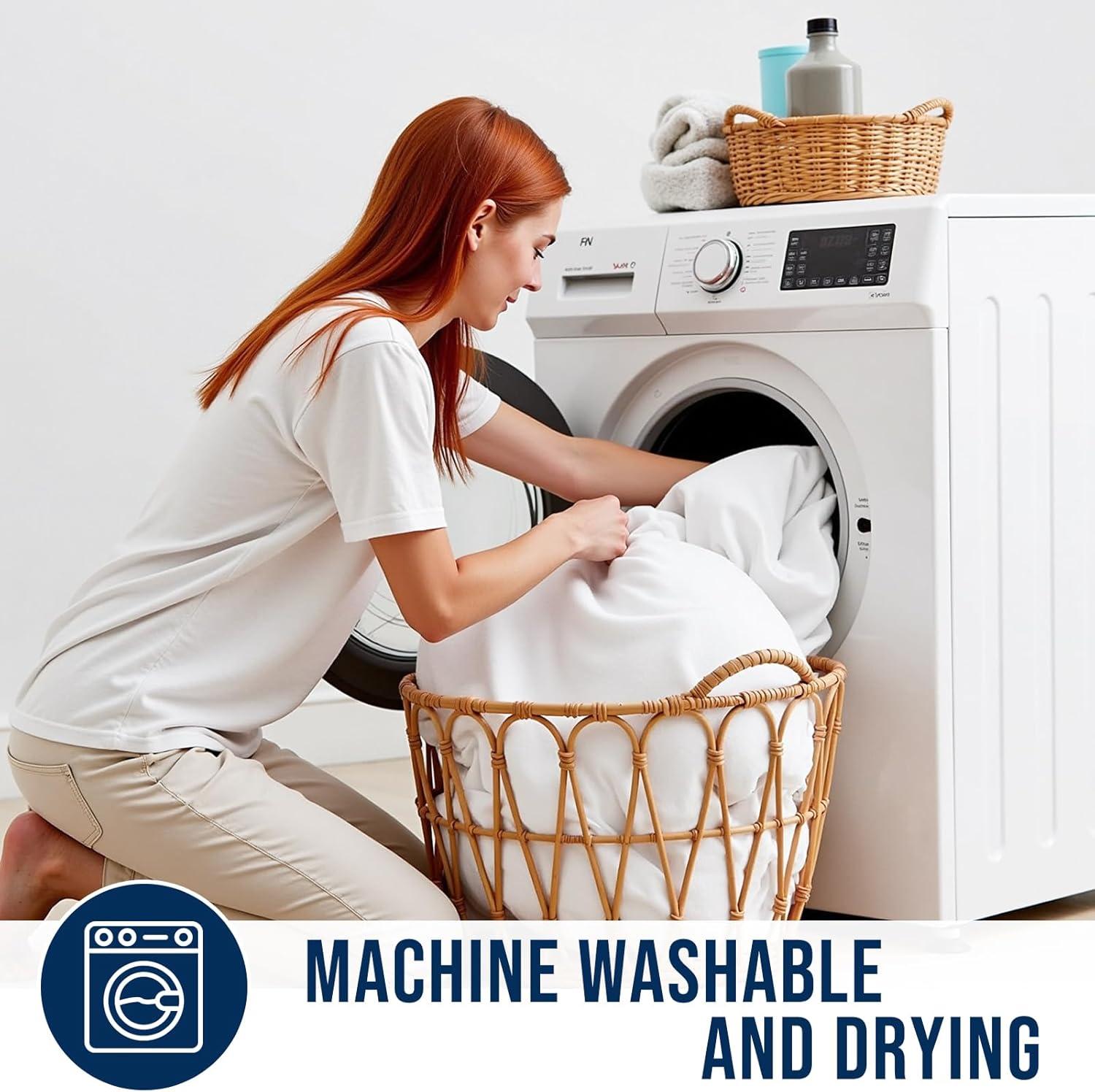 DURABLE, ECO-FRIENDLY & EASY CARE – Crafted from eco-conscious materials, this queen size mattress pad combines sustainability with long-lasting durability. Machine washable and tumble-dry safe, it maintains its loft and softness wash after wash, thanks to advanced quilting that resists clumping.