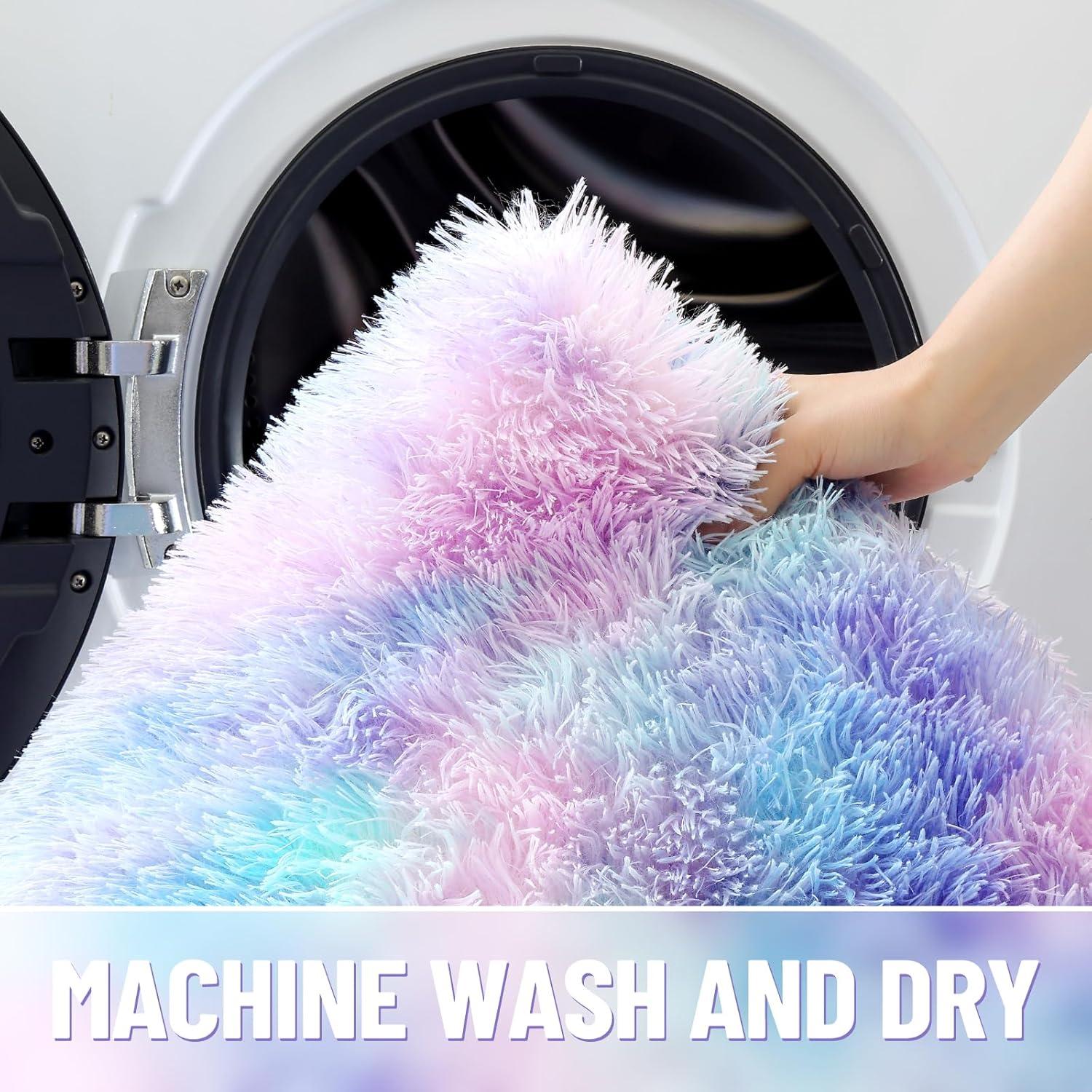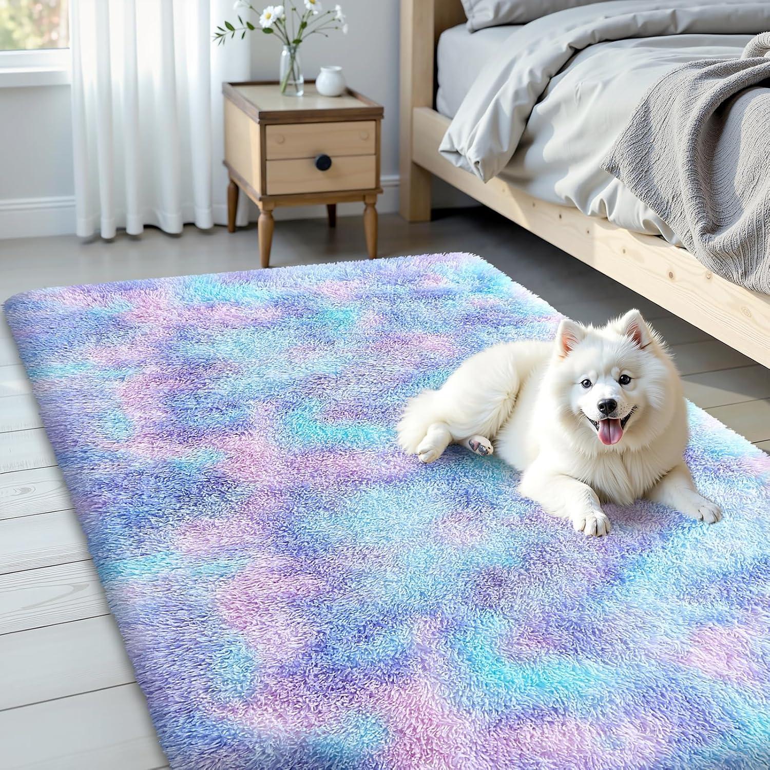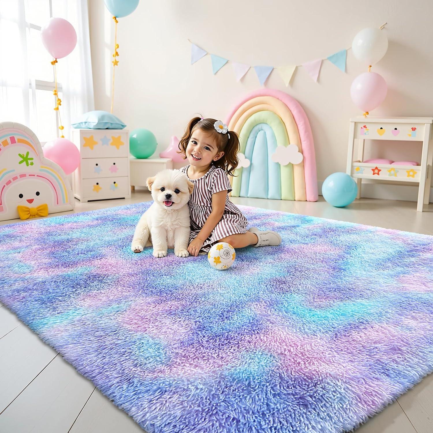 [Kid and Pet-Friendly] Made from soft polyester material, this rug is perfect for children and pets. Is your little one a fan of floor play? Its plush texture provides cozy comfort for barefoot walking and tummy time. Plus, the vibrant color and furry appearance bring a playful vibe to any room, making it a must-have for households with young ones!