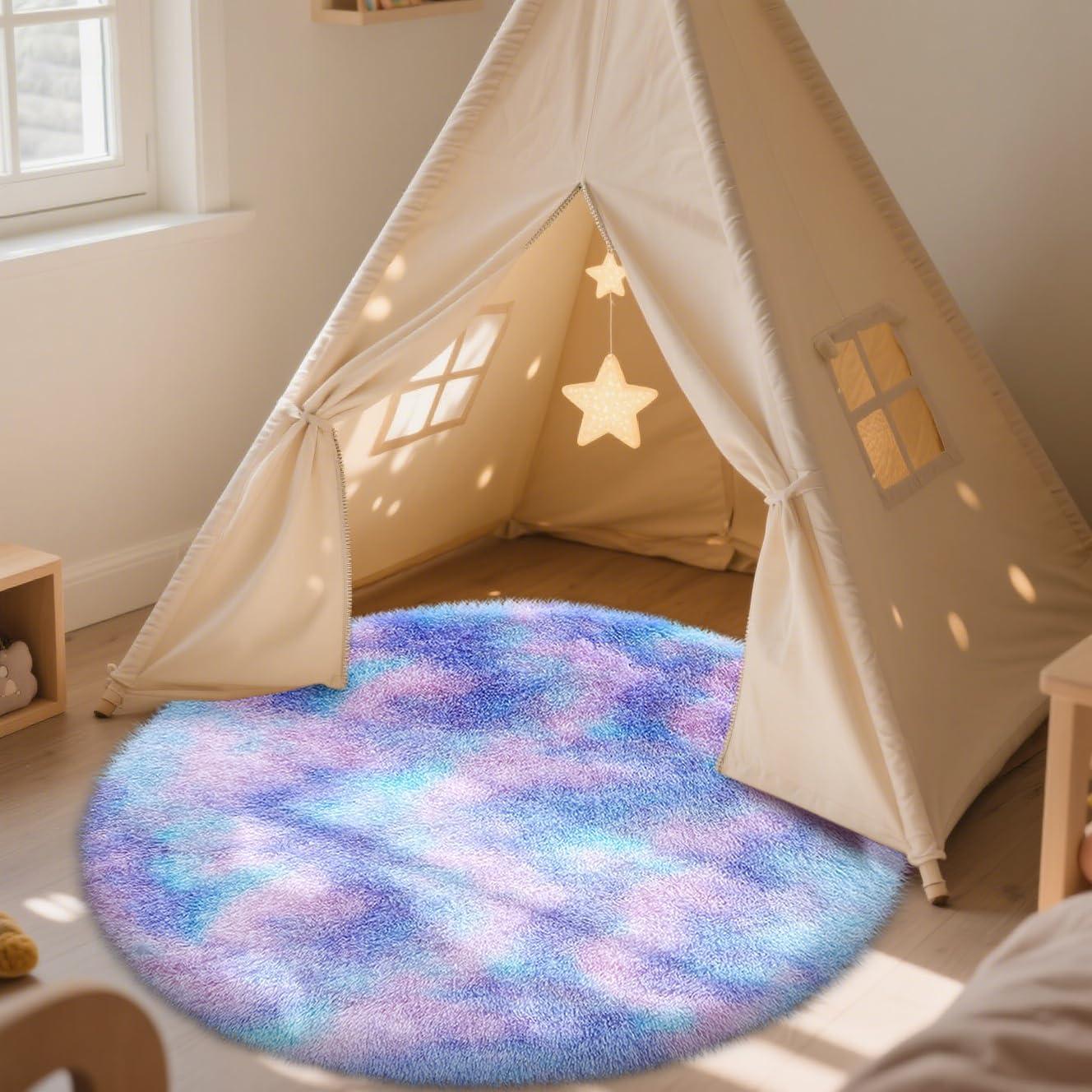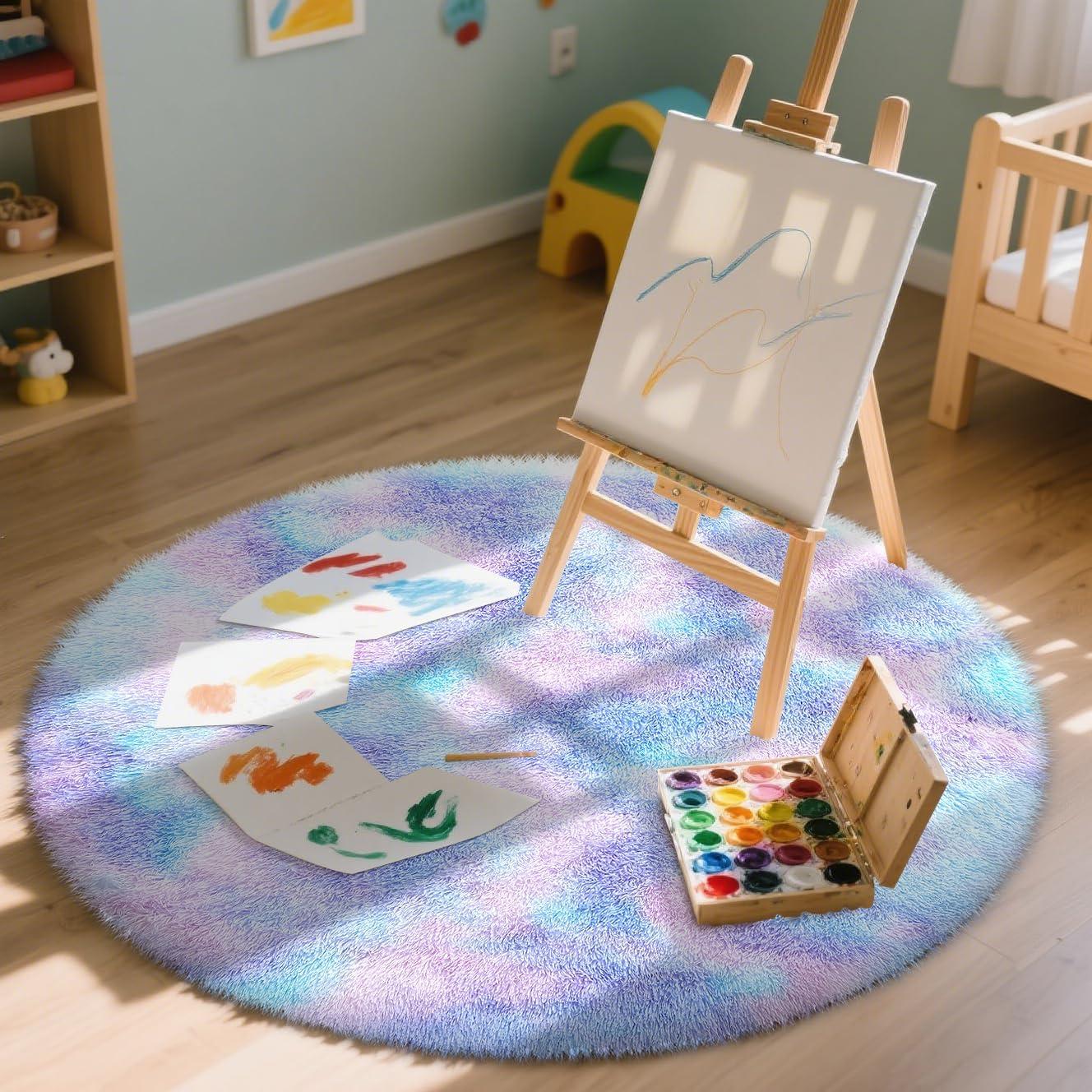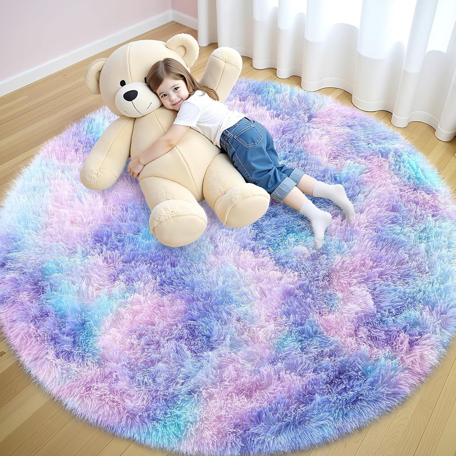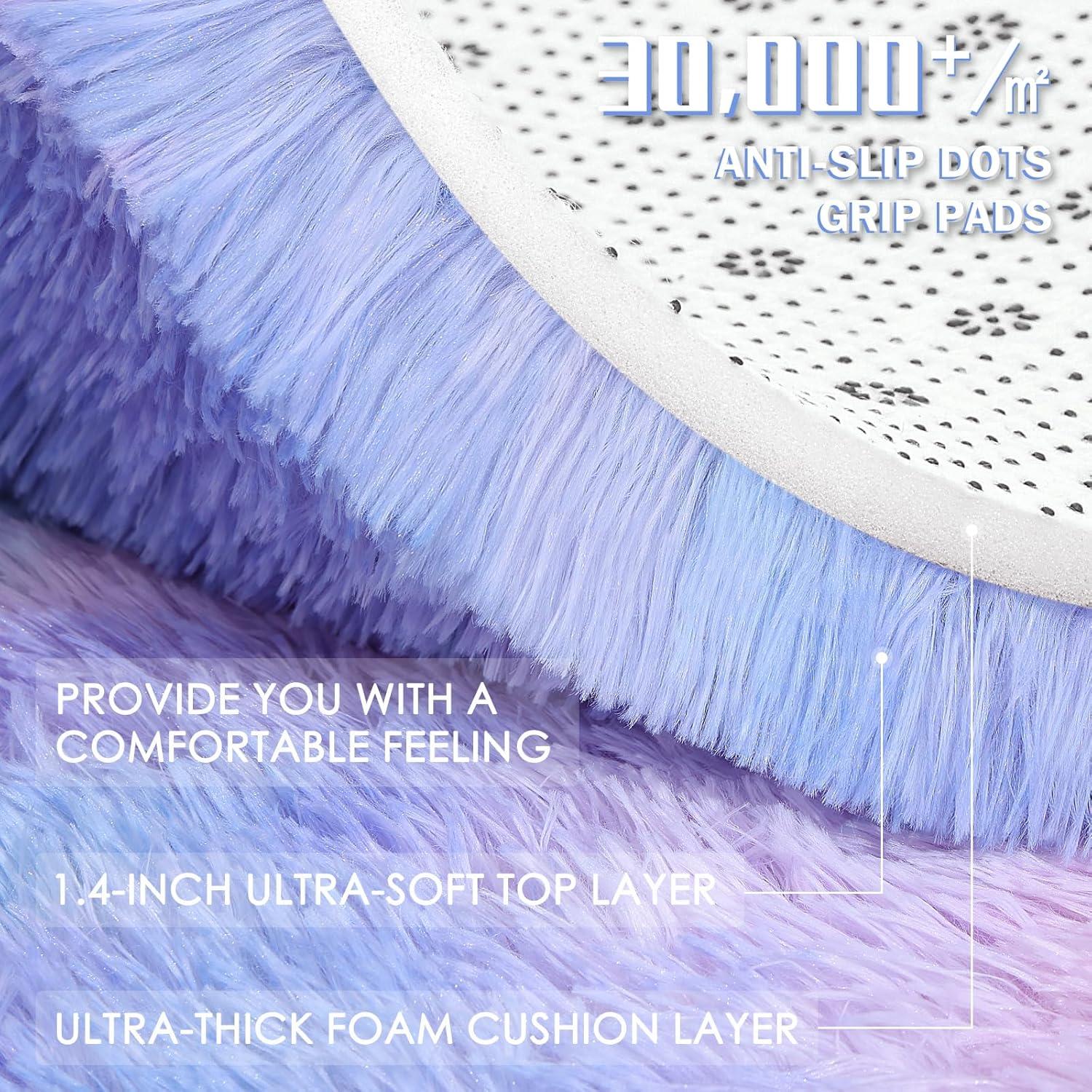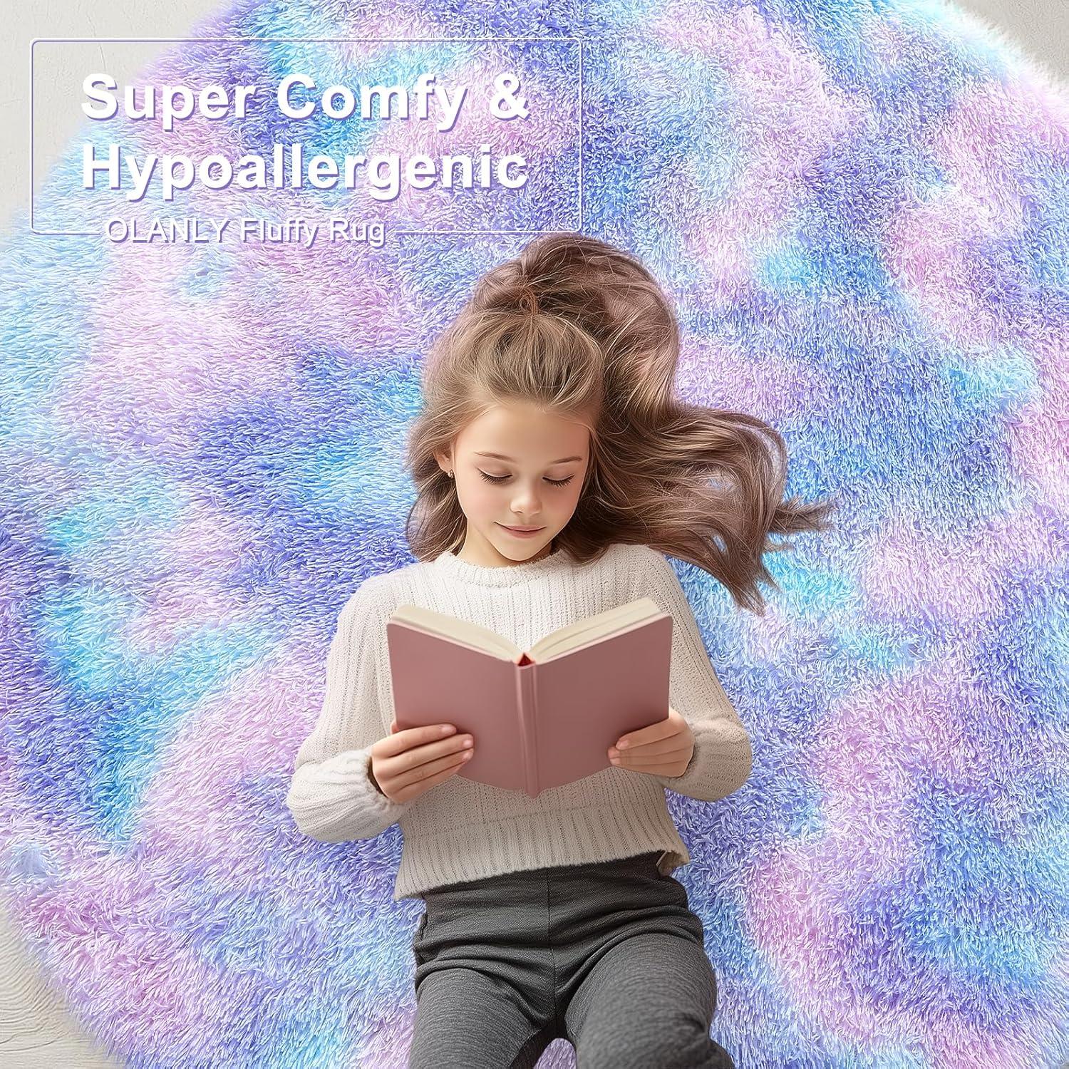 OLANLY Rainbow Round Rugs for Bedroom – Machine Washable, 3×3 Feet Circle Area Rugs for Living Room, Soft and Fluffy Shaggy Carpet for Teen Girls and Boys, Nursery Rooms, Dorms, Home Decor Aesthetic(Purple Rainbow)