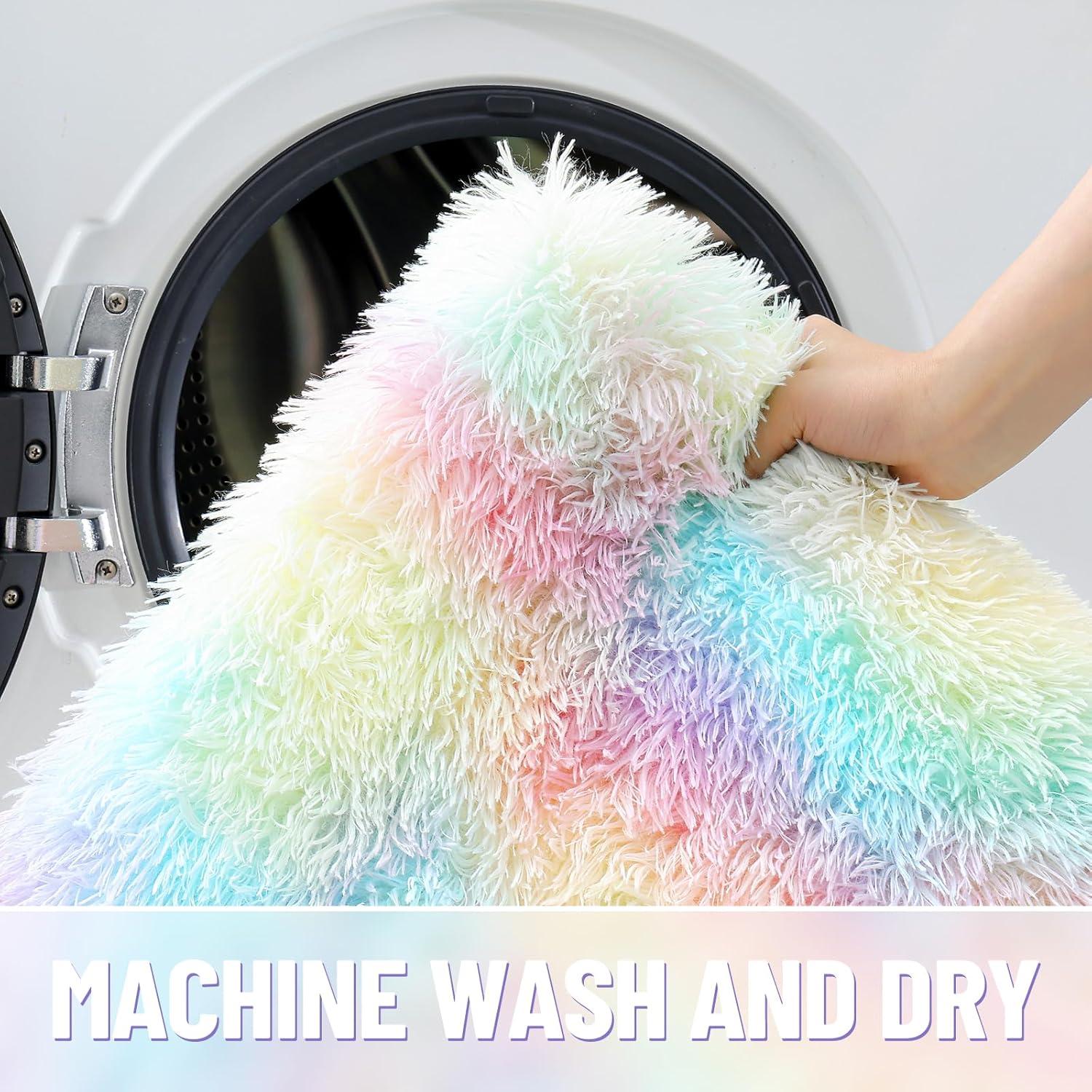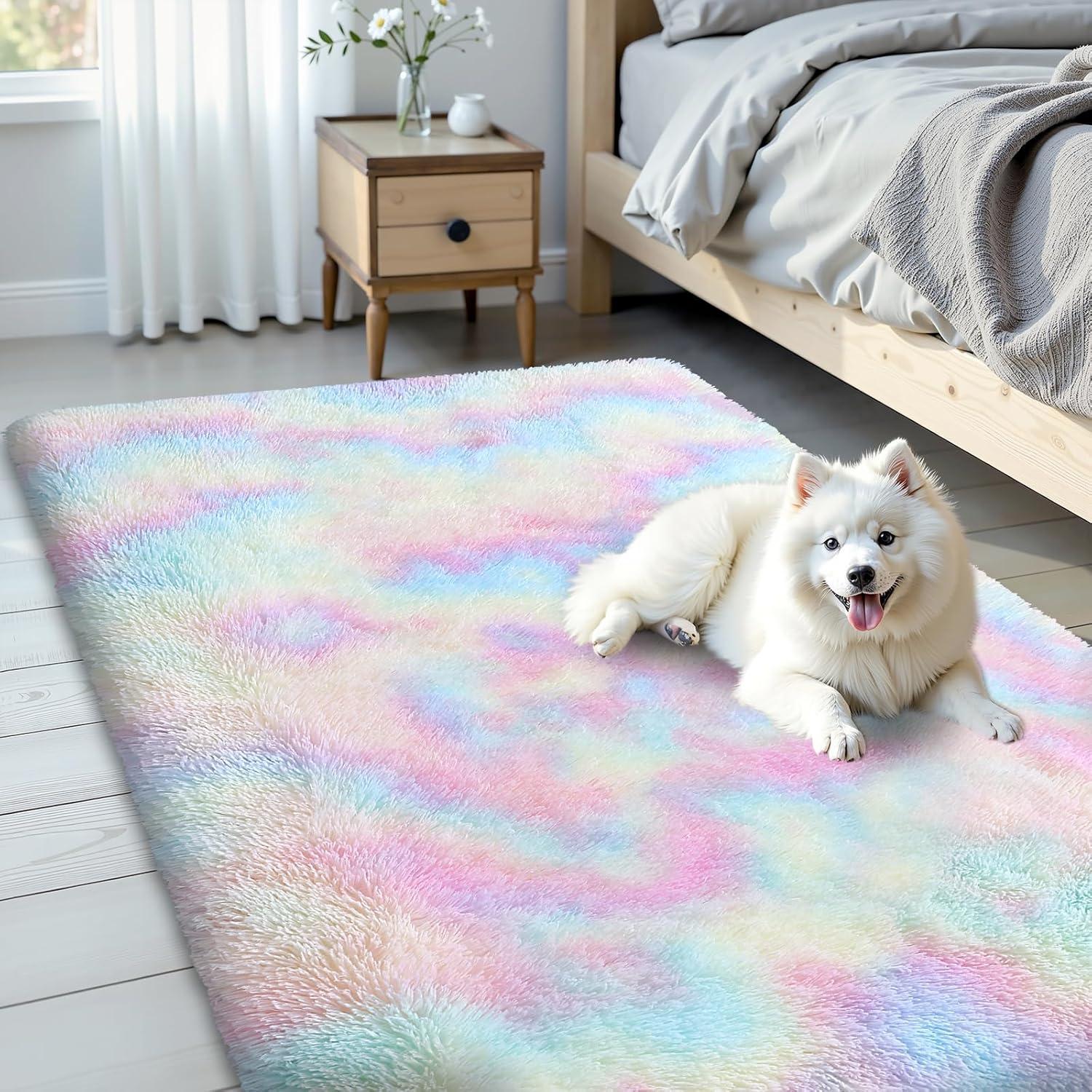 [Kid and Pet-Friendly] Made from soft polyester material, this rug is perfect for children and pets. Is your little one a fan of floor play? Its plush texture provides cozy comfort for barefoot walking and tummy time. Plus, the vibrant color and furry appearance bring a playful vibe to any room, making it a must-have for households with young ones!