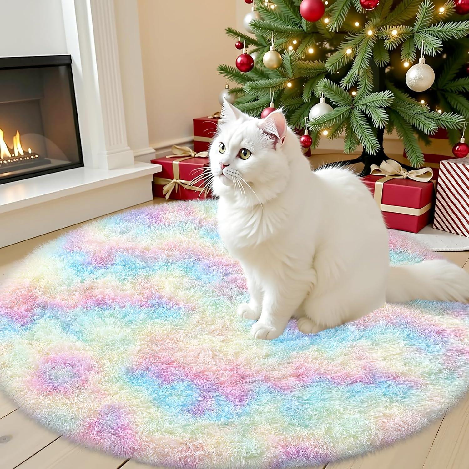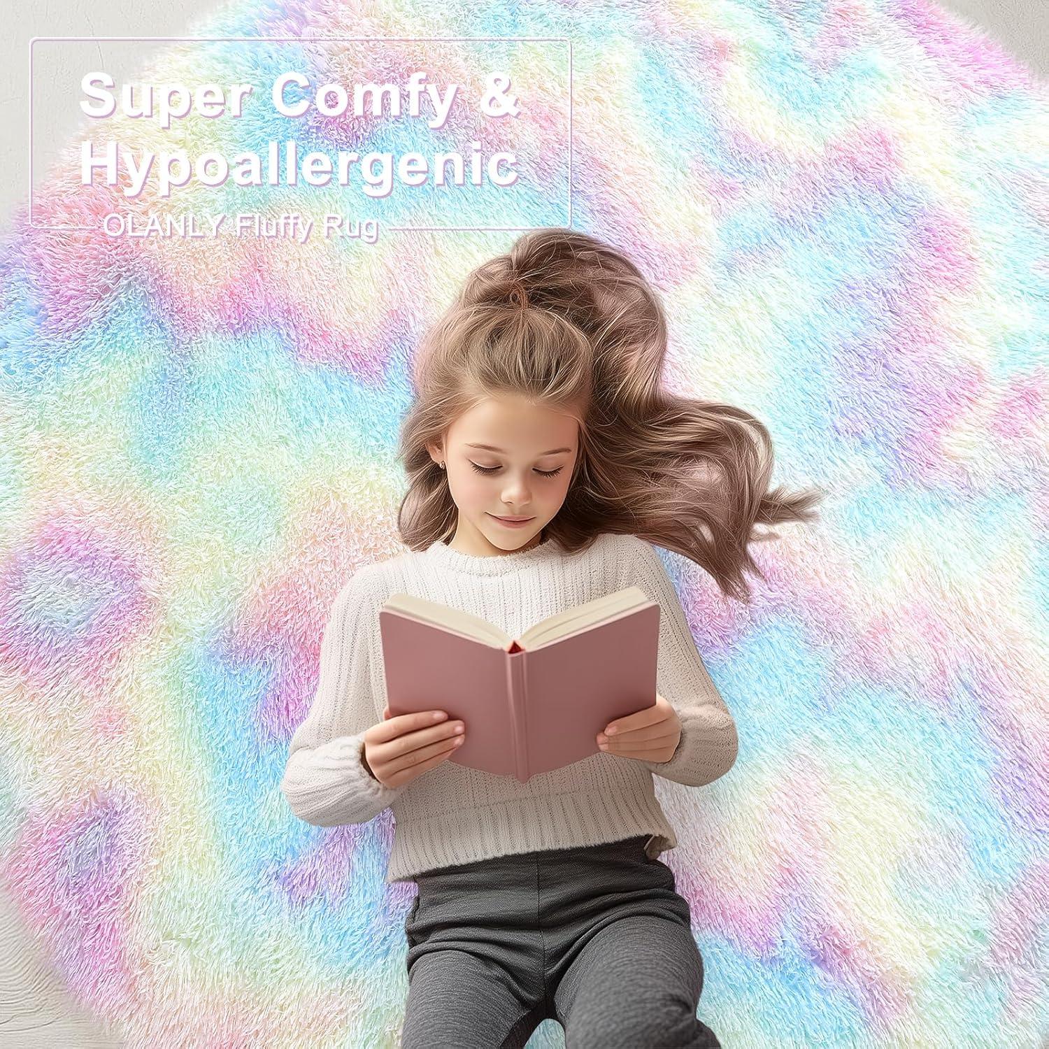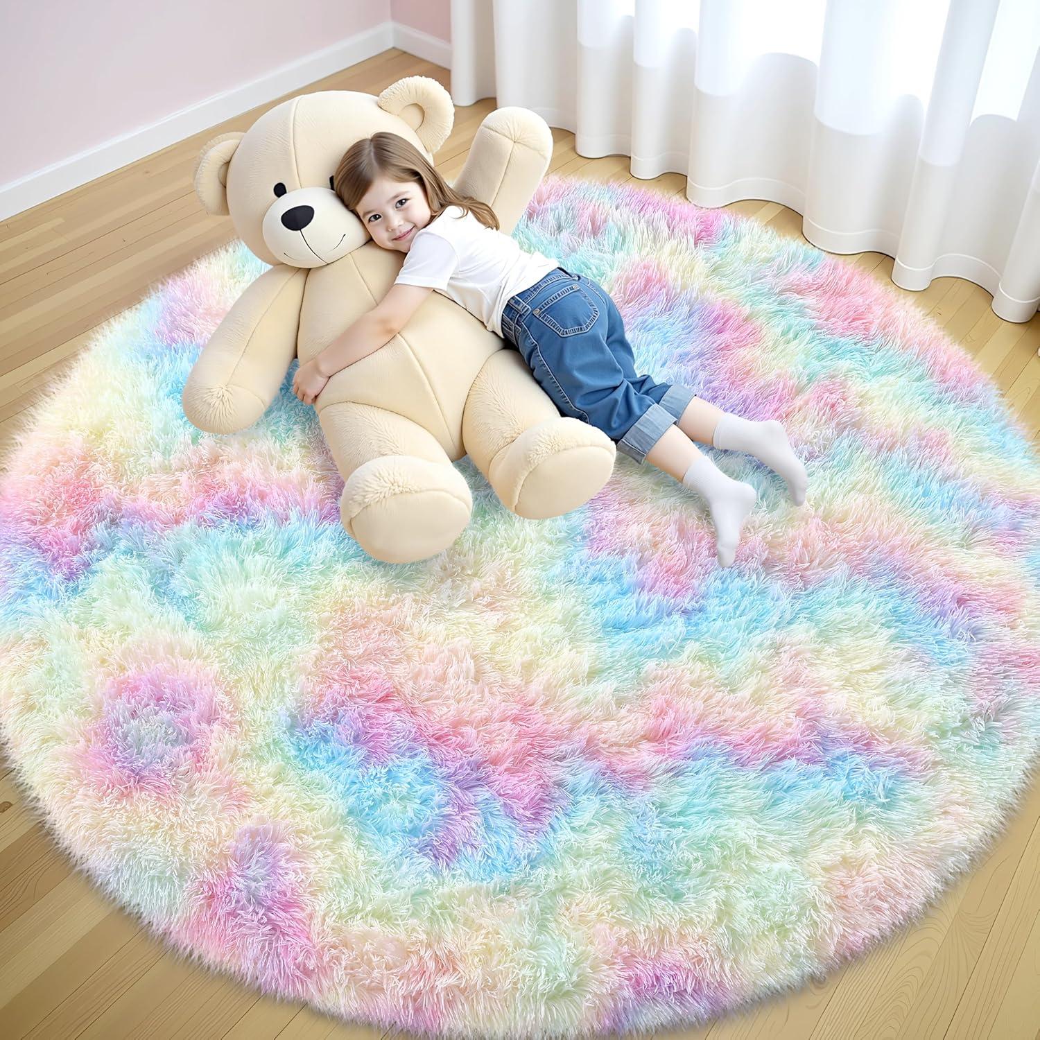 OLANLY Rainbow Round Rugs for Bedroom – Machine Washable, 3×3 Feet Circle Area Rugs for Living Room, Soft and Fluffy Shaggy Carpet for Teen Girls and Boys, Nursery Rooms, Dorms, Home Decor Aesthetic(Rainbow)