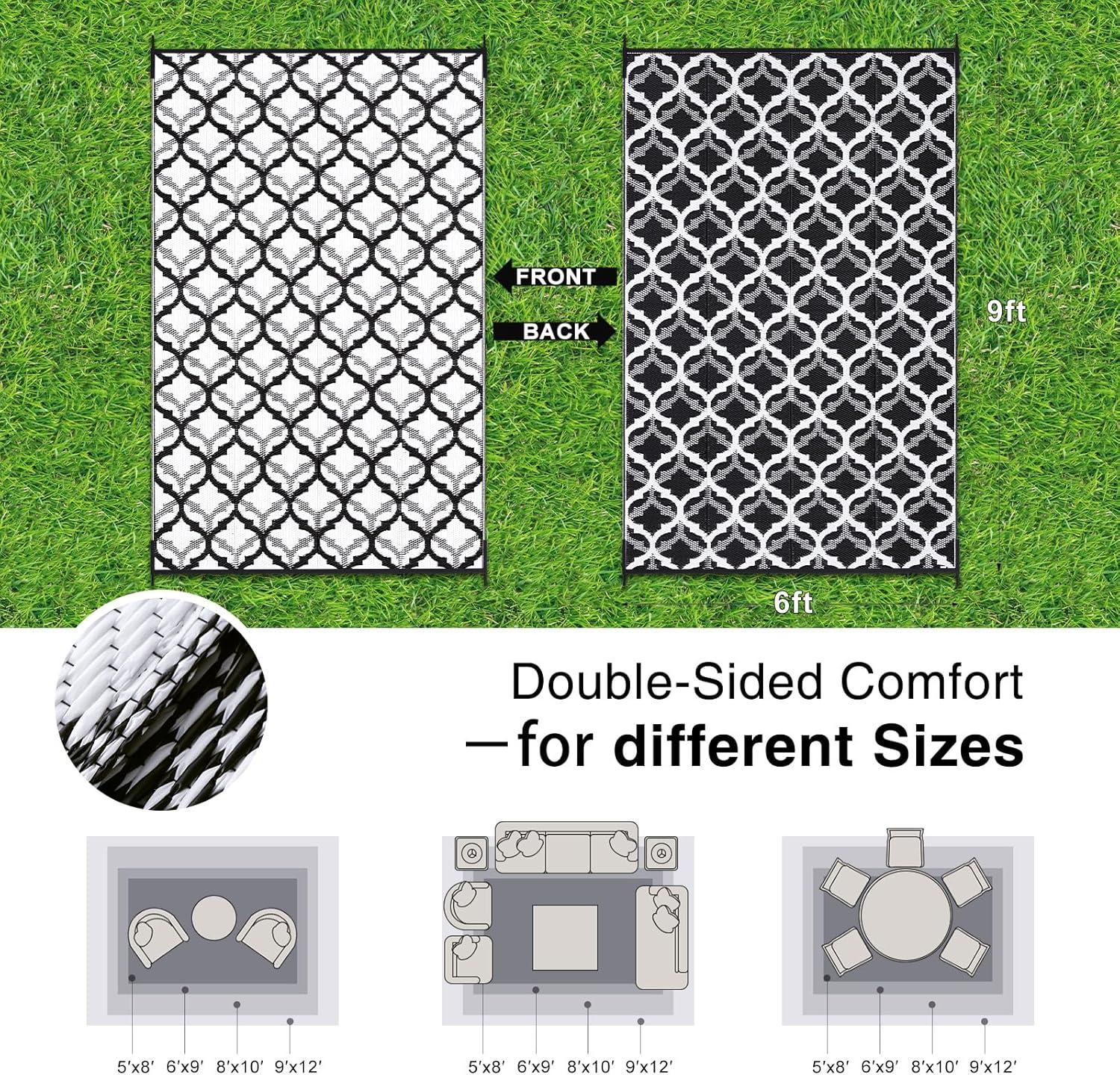 imageOLANLY Reversible Outdoor Rug 5x8 ft Clearance Waterproof Outdoor Plastic Straw Rug with Interlacing Pattern RV Mat for Patio Camping Balcony Deck Backyard Black ampamp WhiteBlack  White