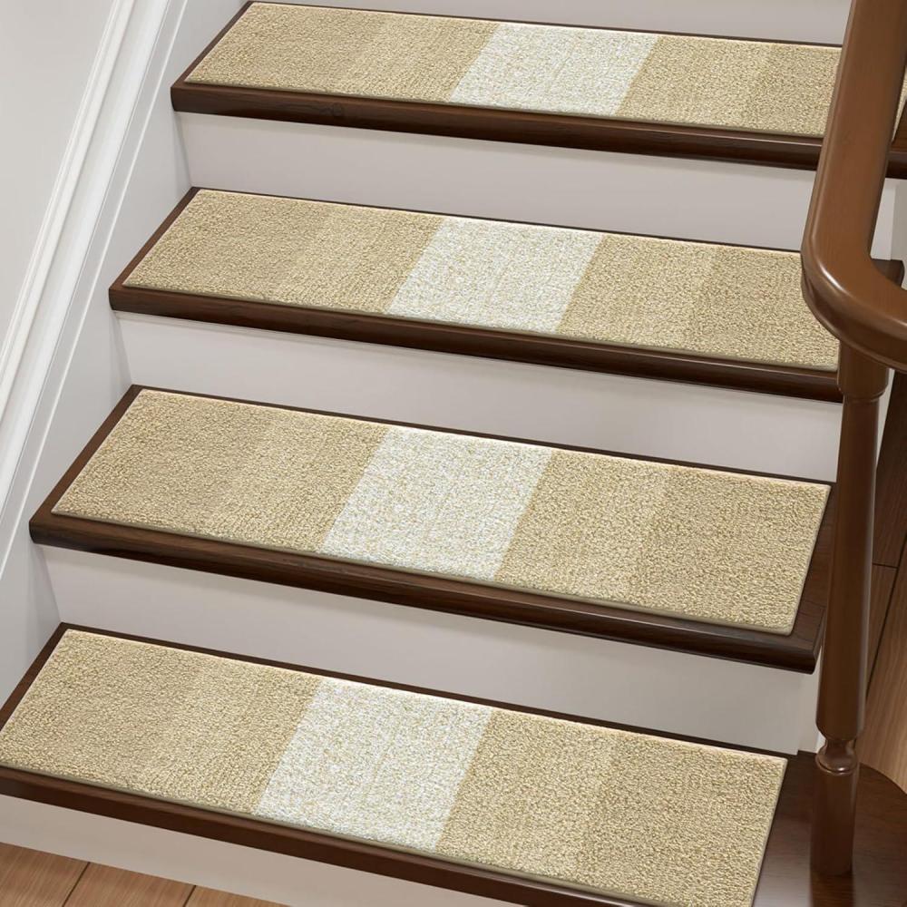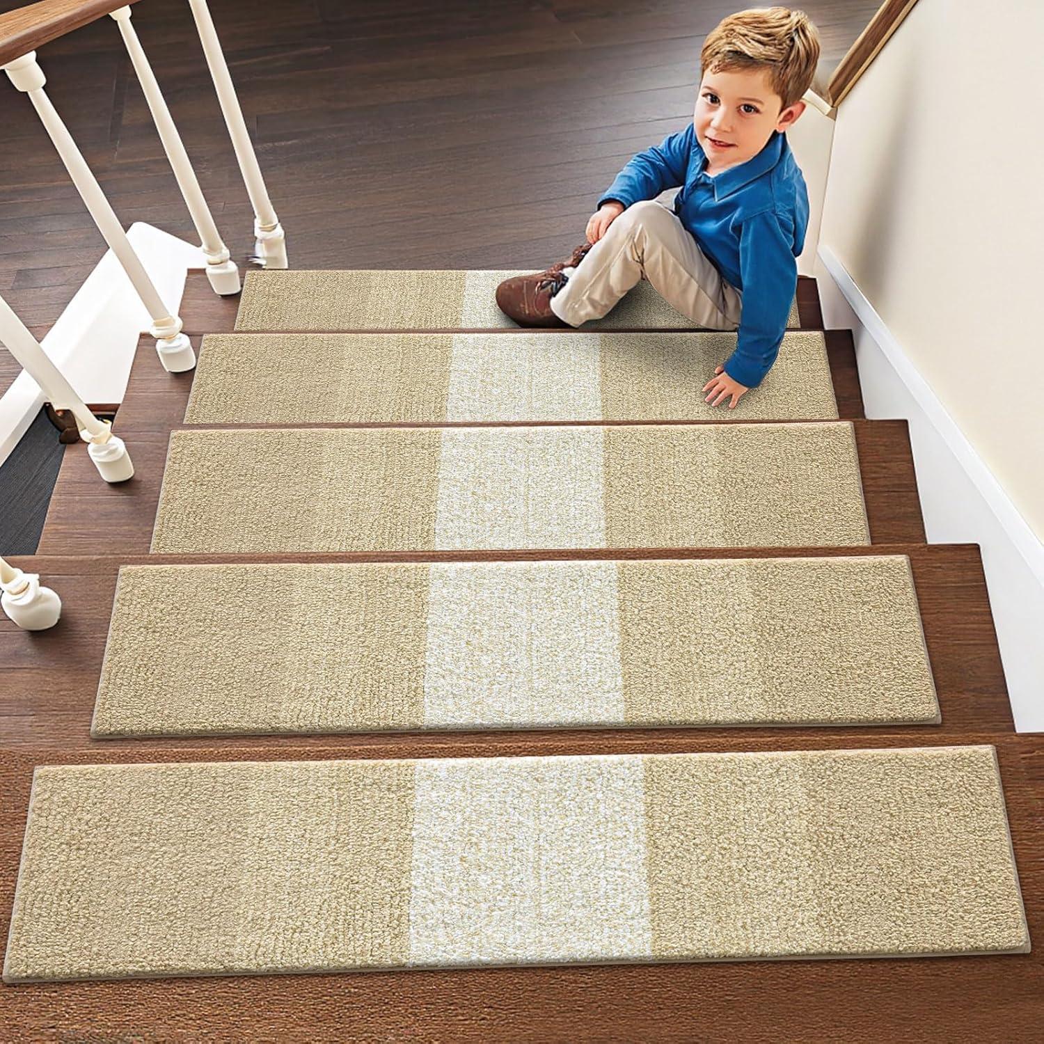 Get your hands on our exclusive OLANLY Stair Treads Non Slip 15PCS, 8" x 30" Indoor Stair Runners for Wooden Steps, Edging Stair Rugs with Reusable Peel and Stick Adhesive for Kids Elders and Pets, Brown(Beige) collection, now at a discounted price.
