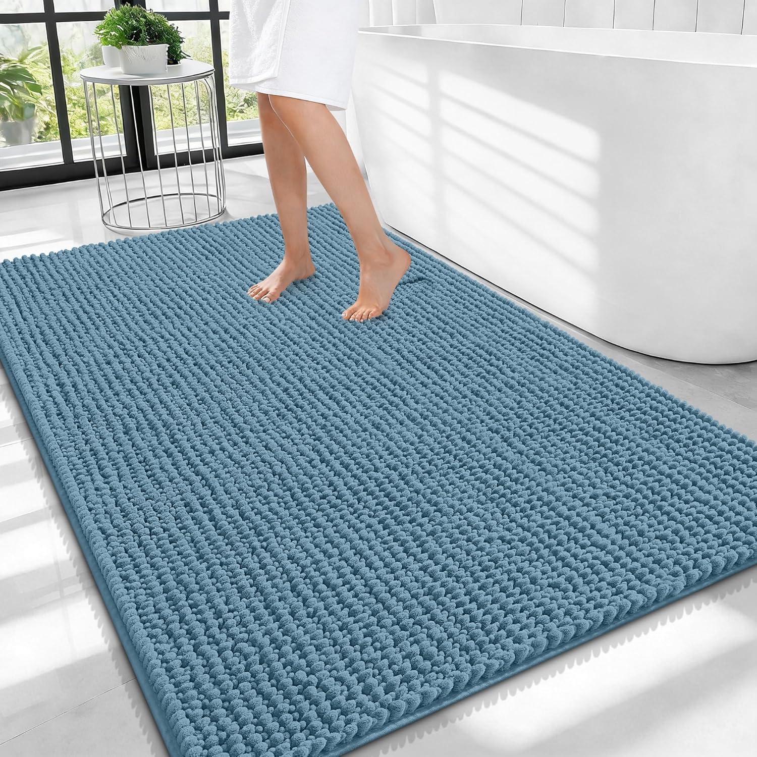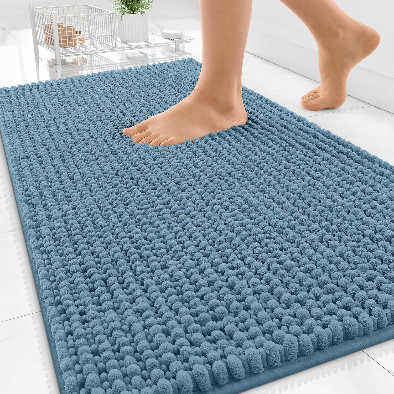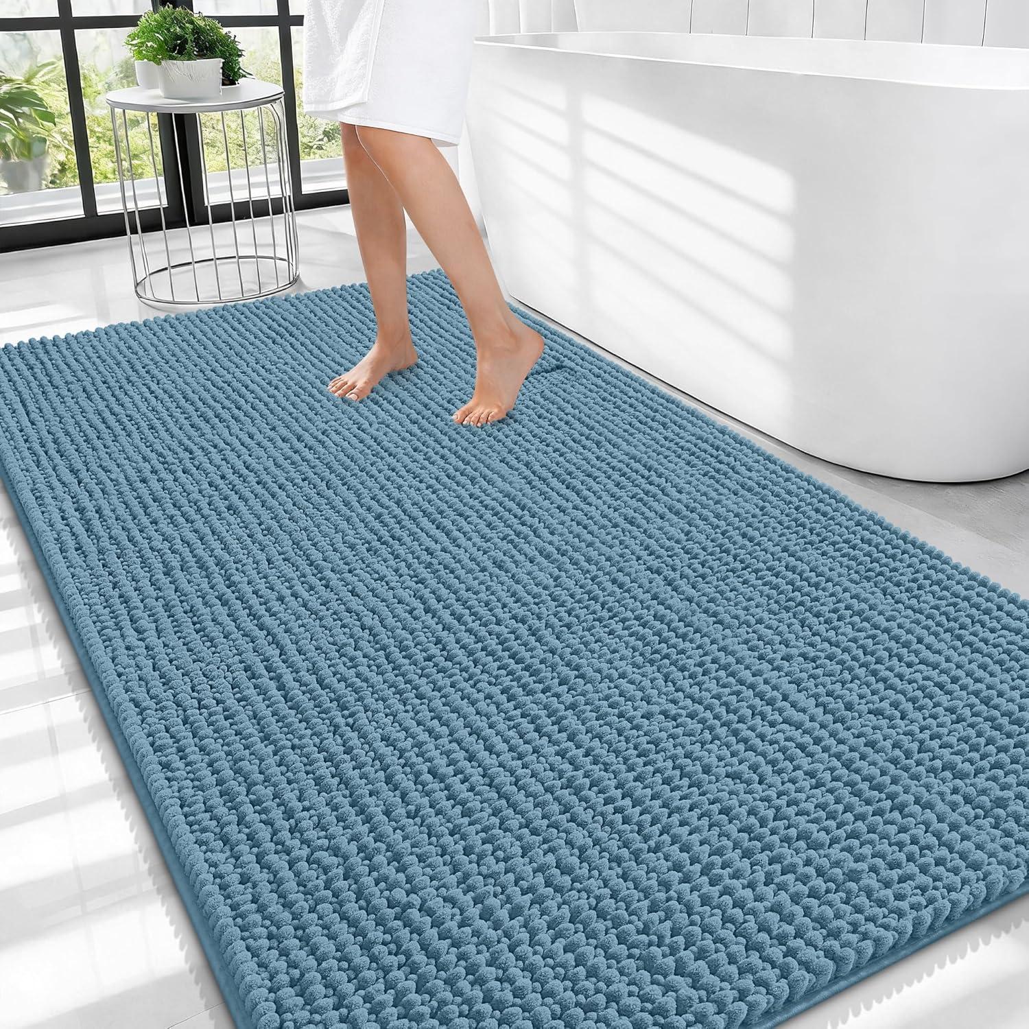 OLANLY Thick Bathroom Rugs 30x20, Extra Soft Absorbent Chenille Bath Rugs, Rubber Backing, Machine Wash Dry, Bath Mats for Bathroom Floor, Tub and Shower, Home Decor Accessories, Grey(Airy Blue)