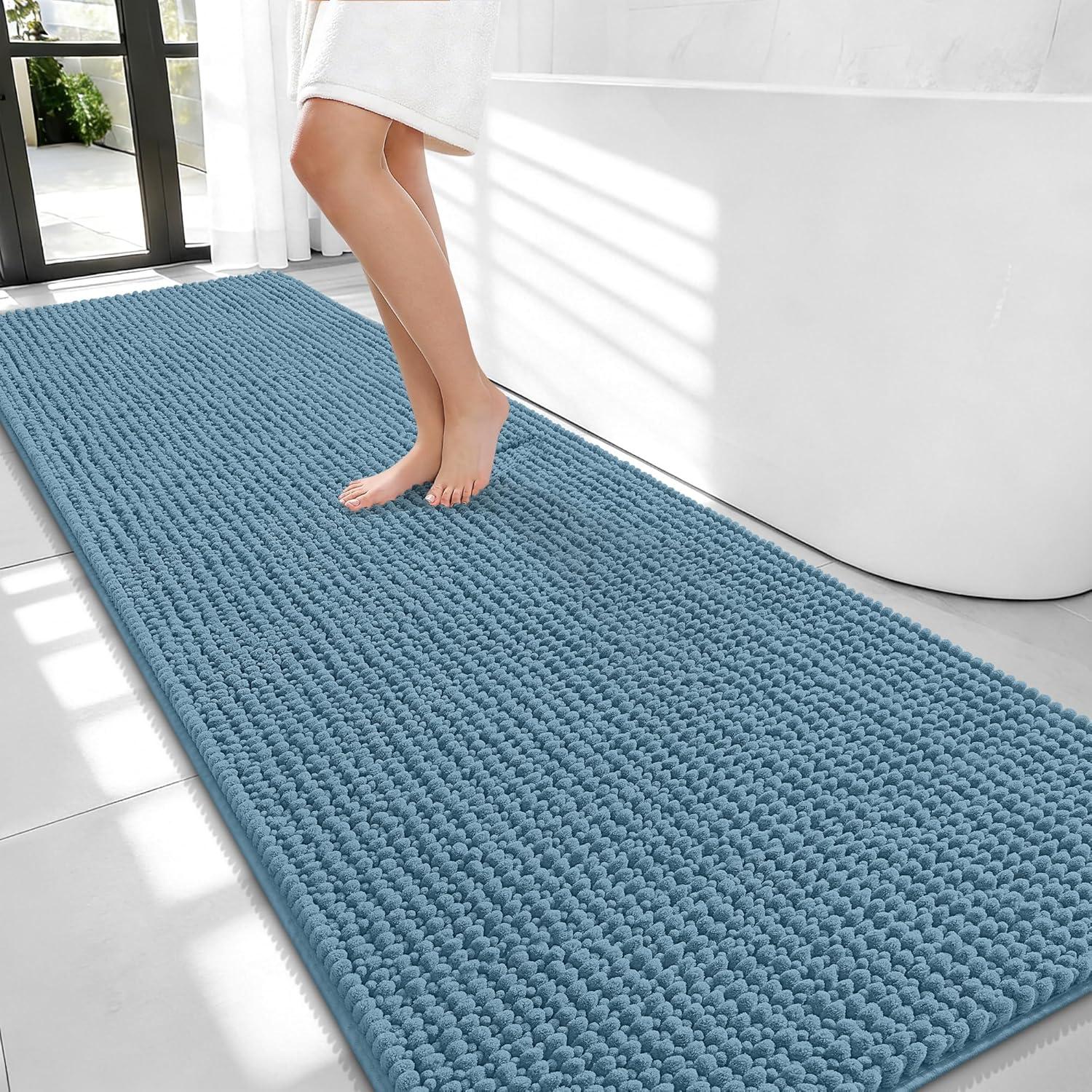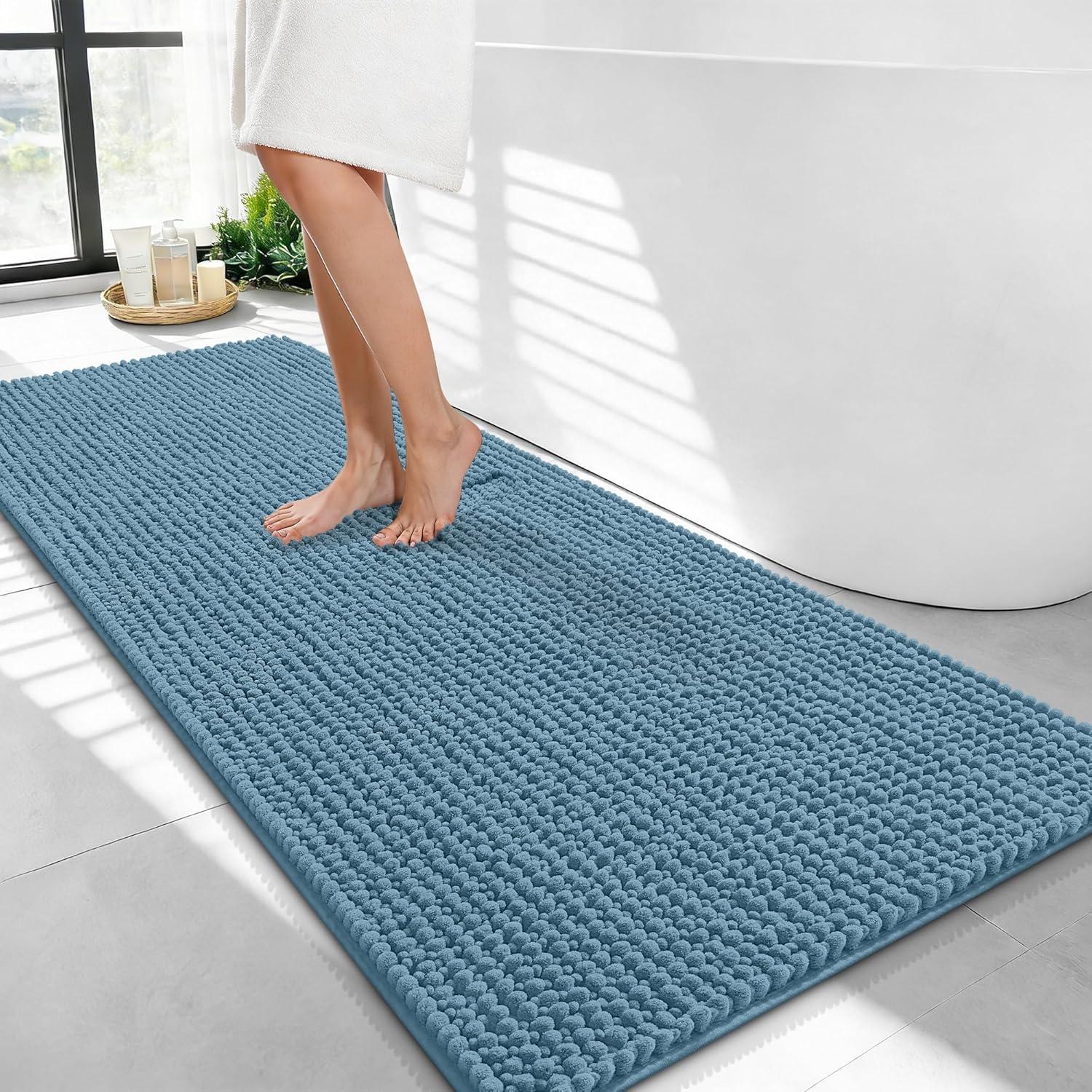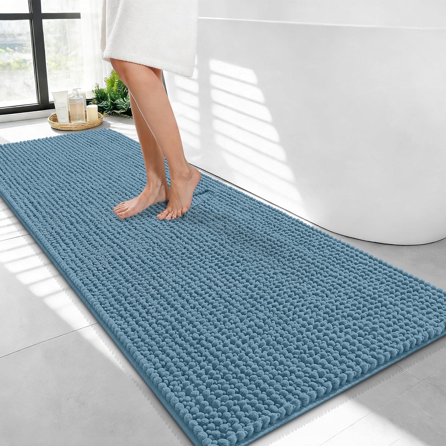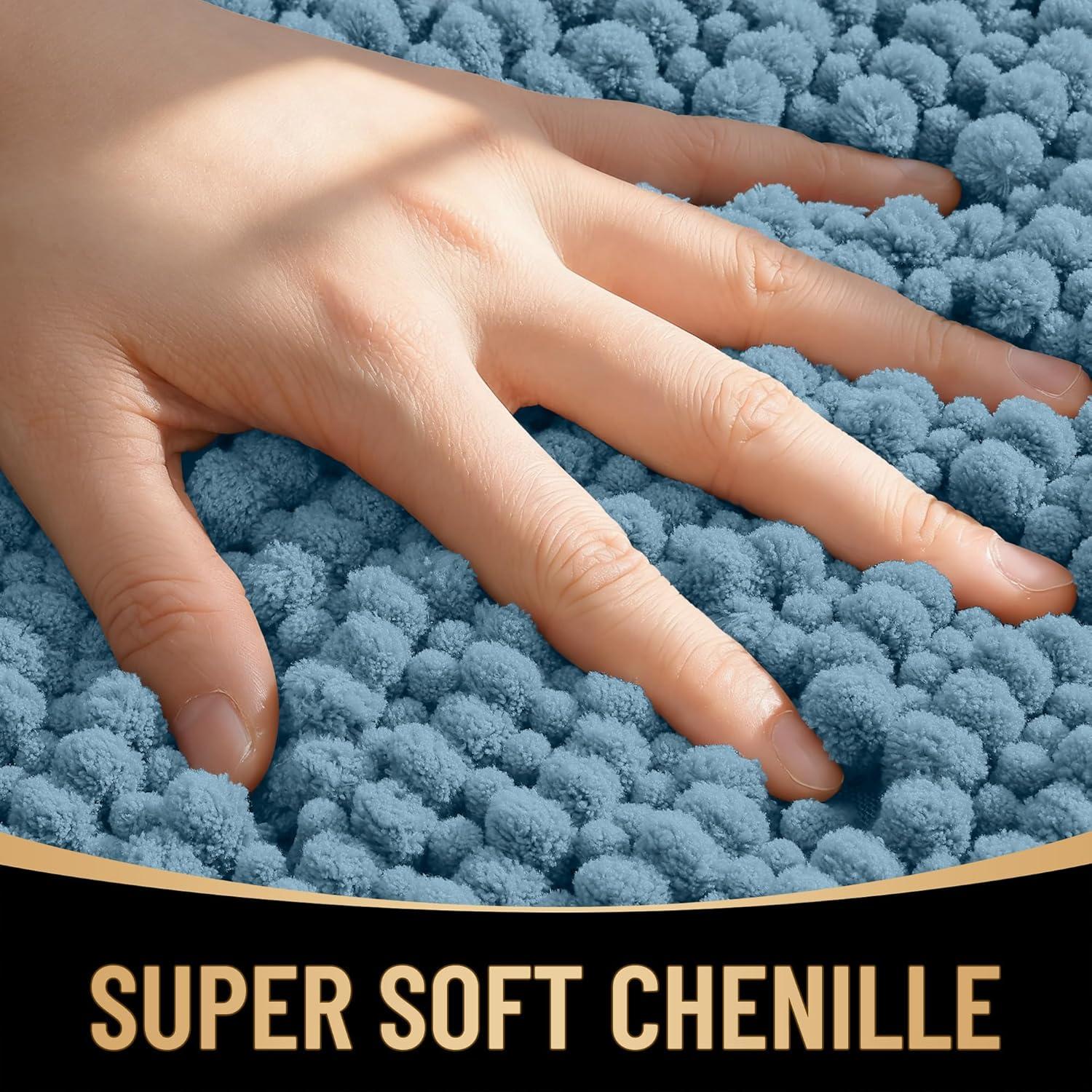OLANLY Thick Bathroom Rugs 30x20, Extra Soft Absorbent Chenille Bath Rugs, Rubber Backing, Machine Wash Dry, Bath Mats for Bathroom Floor, Tub and Shower, Home Decor Accessories, Grey(Airy Blue)