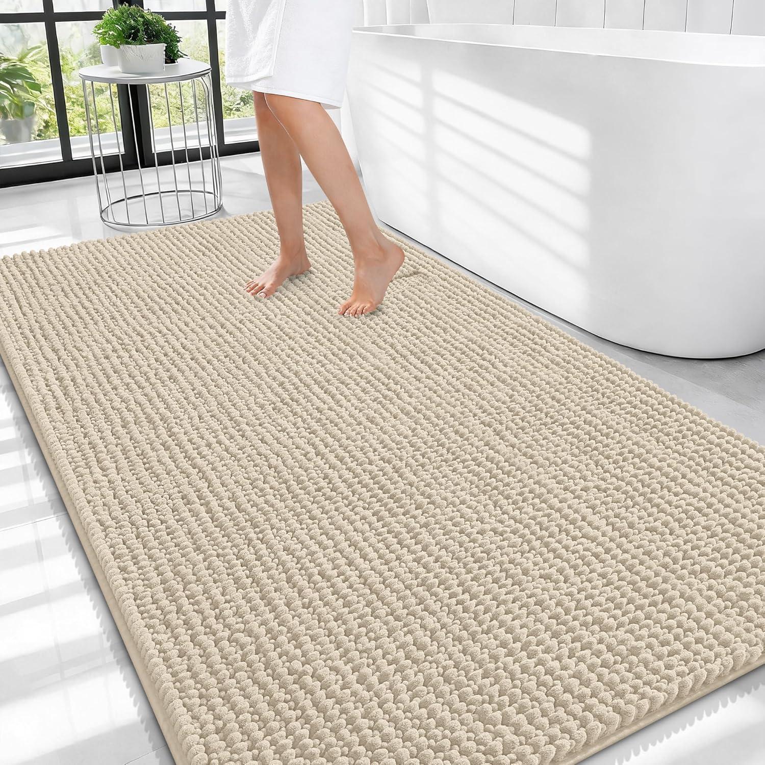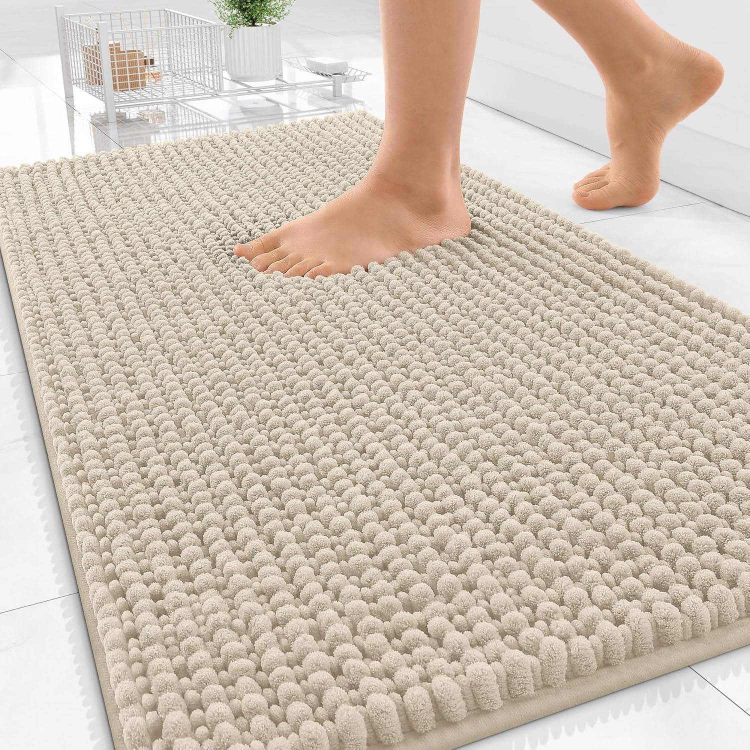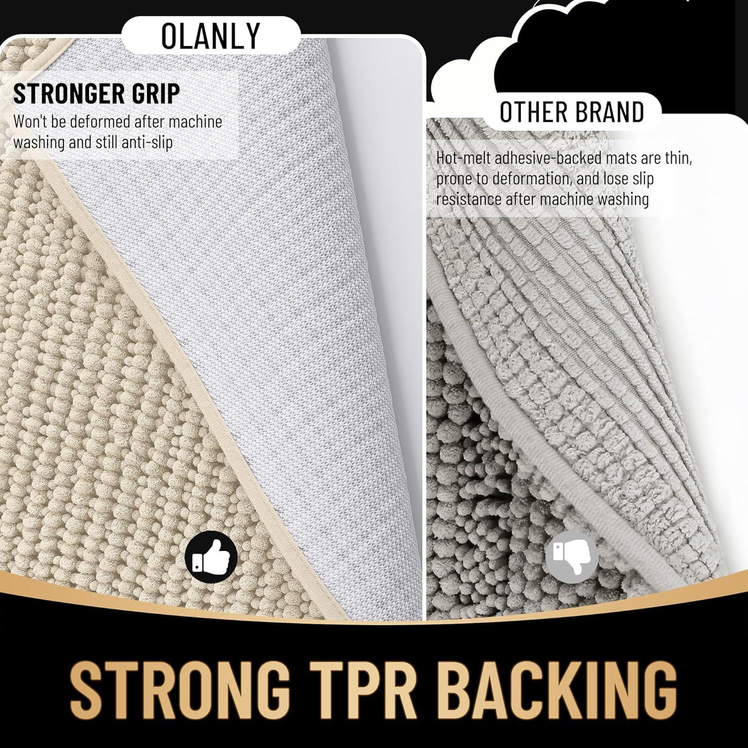 OLANLY Thick Bathroom Rugs 30x20, Extra Soft Absorbent Chenille Bath Rugs, Rubber Backing, Machine Wash Dry, Bath Mats for Bathroom Floor, Tub and Shower, Home Decor Accessories, Grey(Sand)