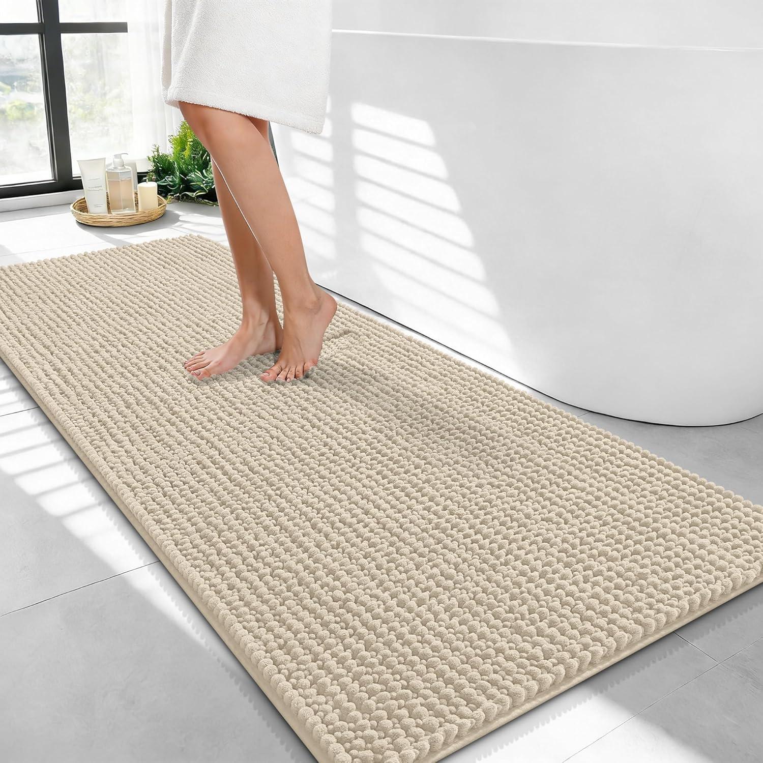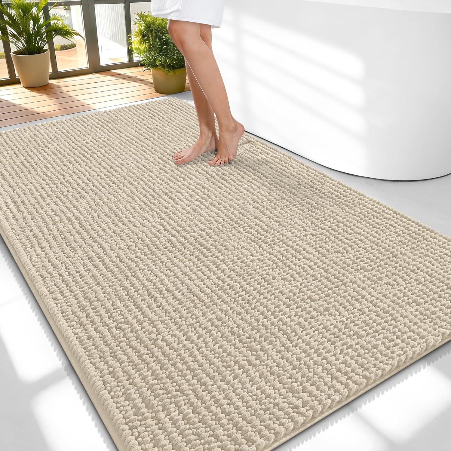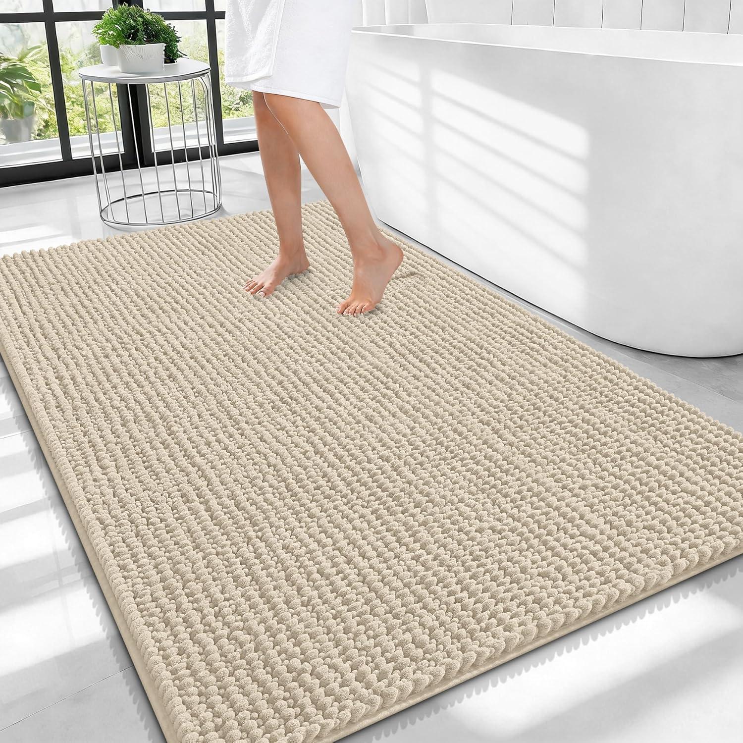 OLANLY Thick Bathroom Rugs 30x20, Extra Soft Absorbent Chenille Bath Rugs, Rubber Backing, Machine Wash Dry, Bath Mats for Bathroom Floor, Tub and Shower, Home Decor Accessories, Grey(Sand)