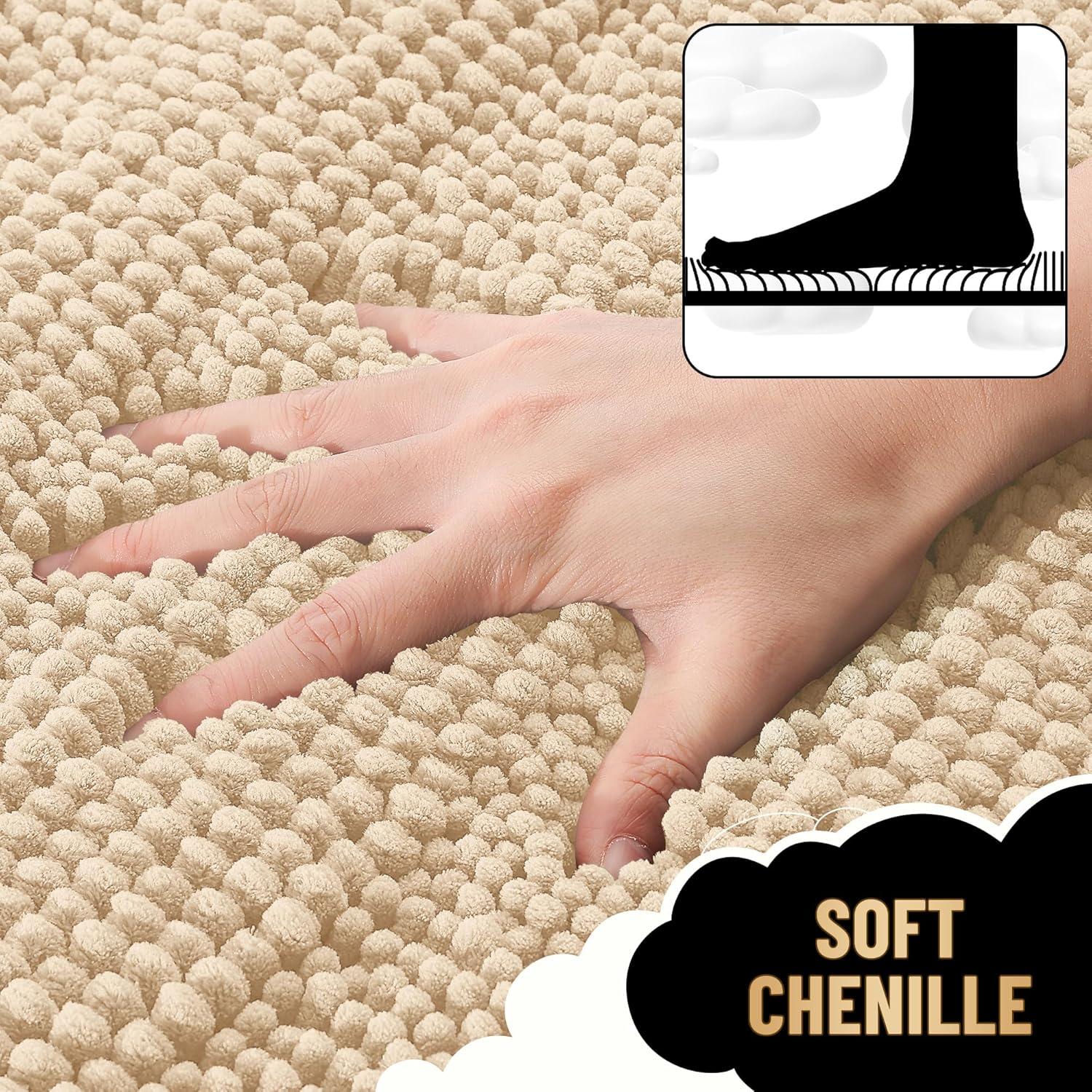 Soft and Plush Chenille – OLANLY's chenille bathroom rugs boast an elegant striped design, bringing a touch of modern luxury to your space. Each step onto the thick and soft chenille floor mat is a delightful experience, offering an ultimate sense of indulgence for your feet. With a high pile density and ultra-plush texture, these rugs provide exceptional comfort.
