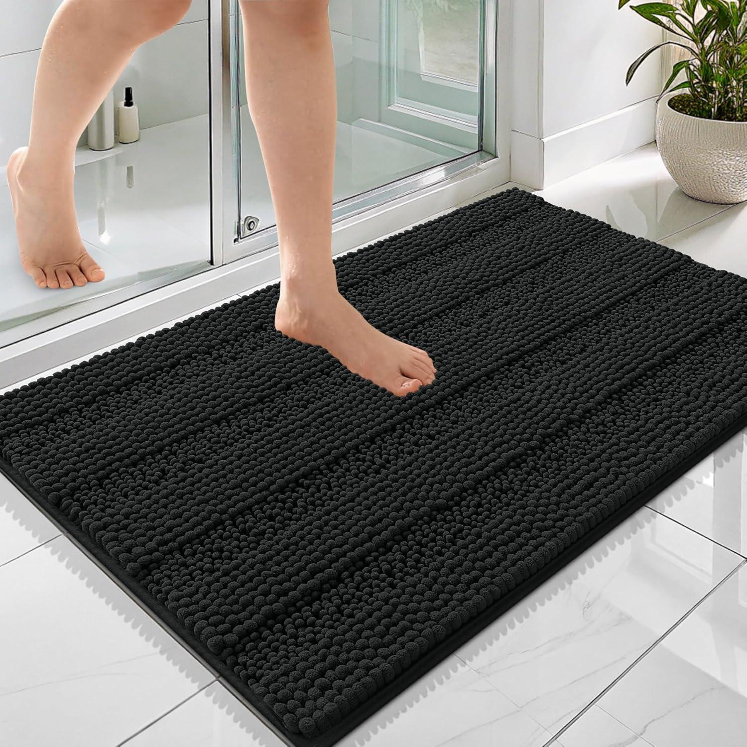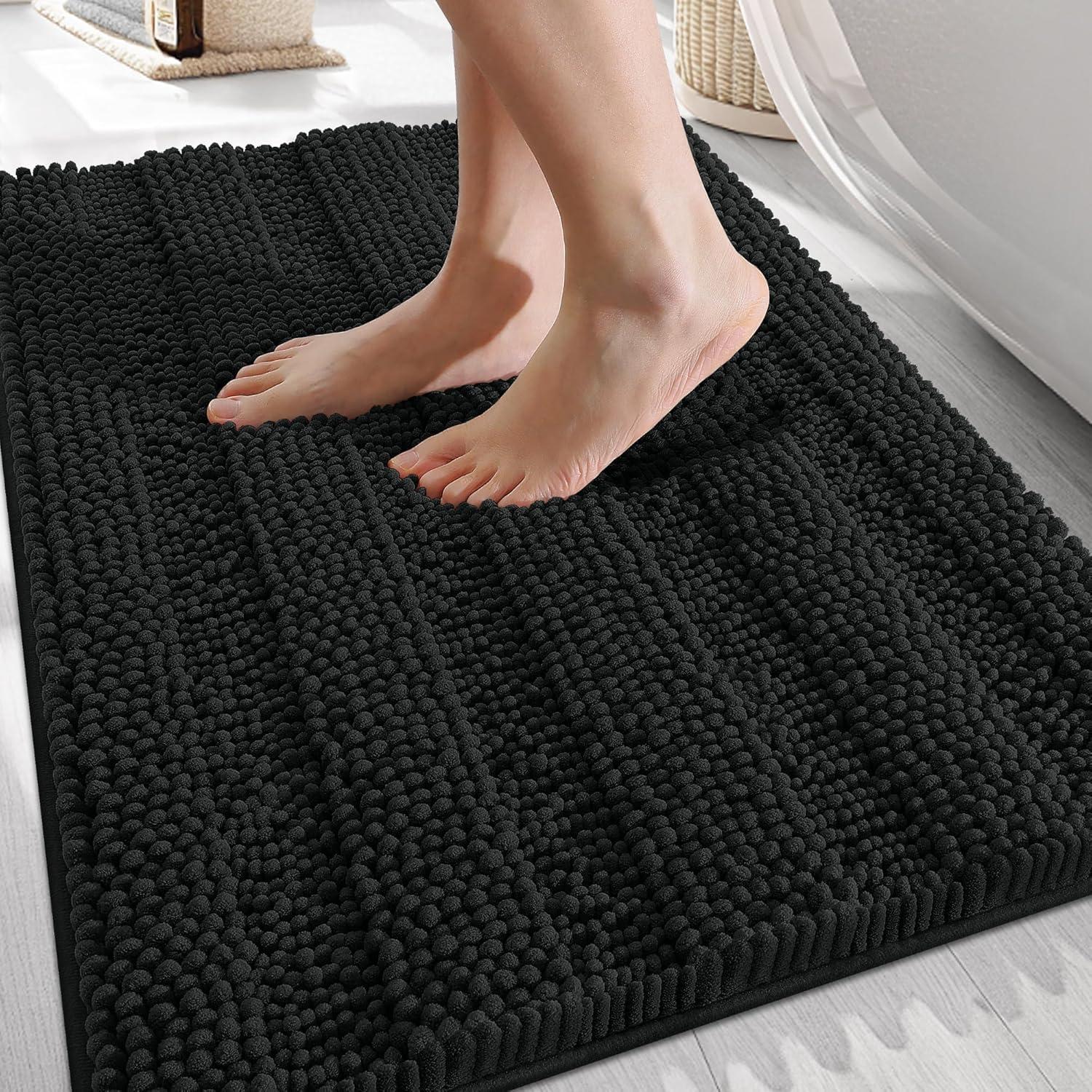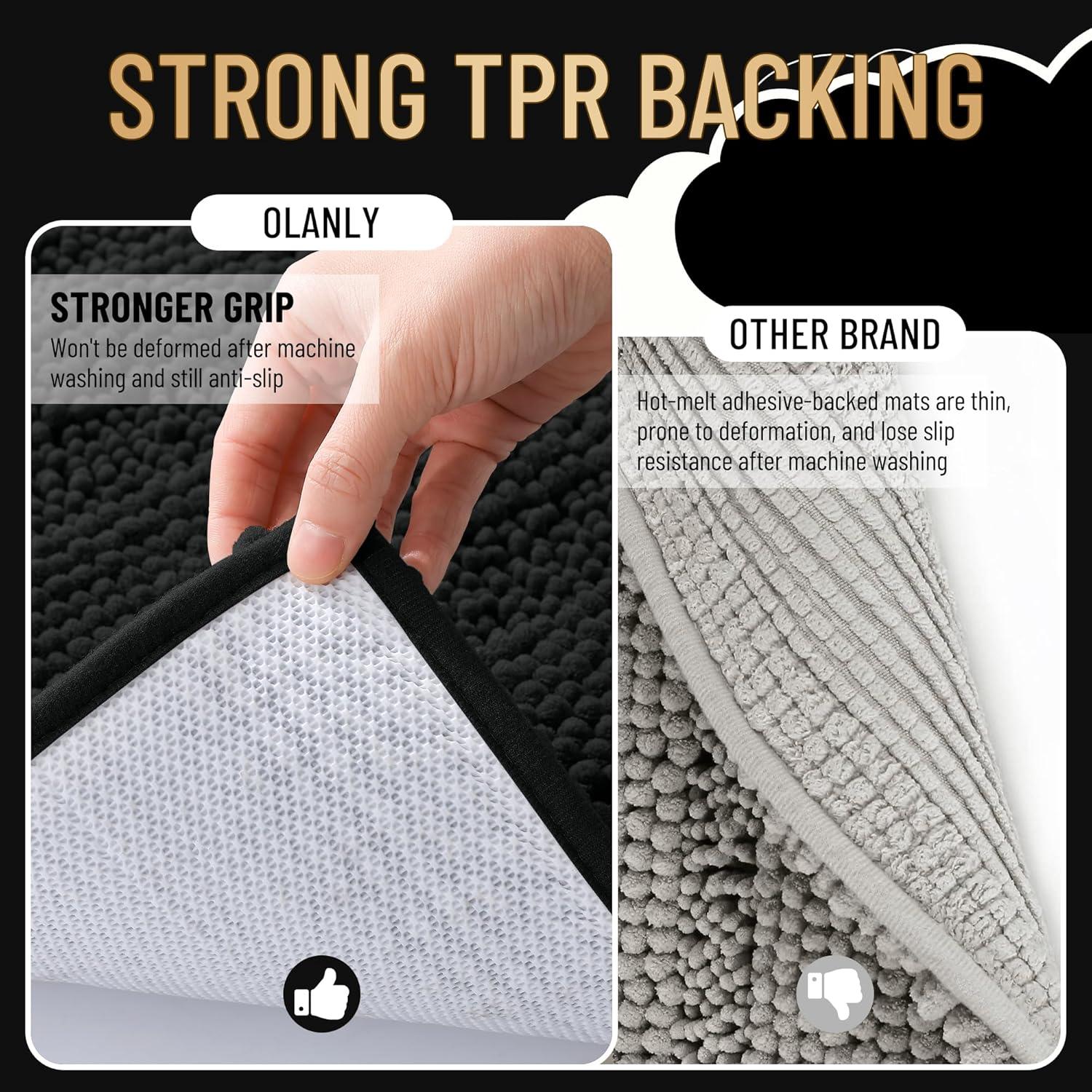 OLANLY Thick Bathroom Rugs 30x20, Extra Soft Absorbent Chenille Striped Bath Rugs, Rubber Backing, Machine Wash Dry, Bath Mats for Bathroom Floor, Tub and Shower, Home Decor Accessories, Grey(Black)