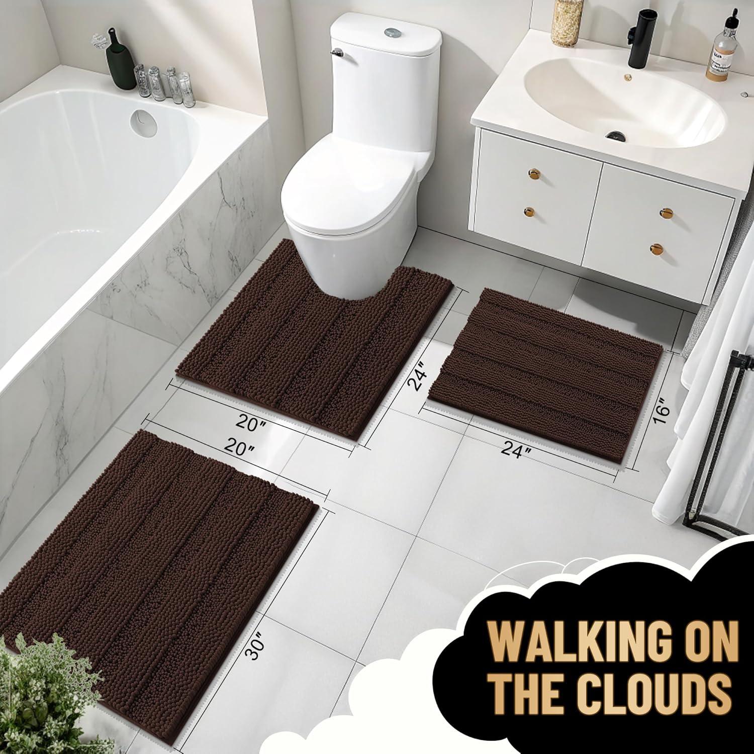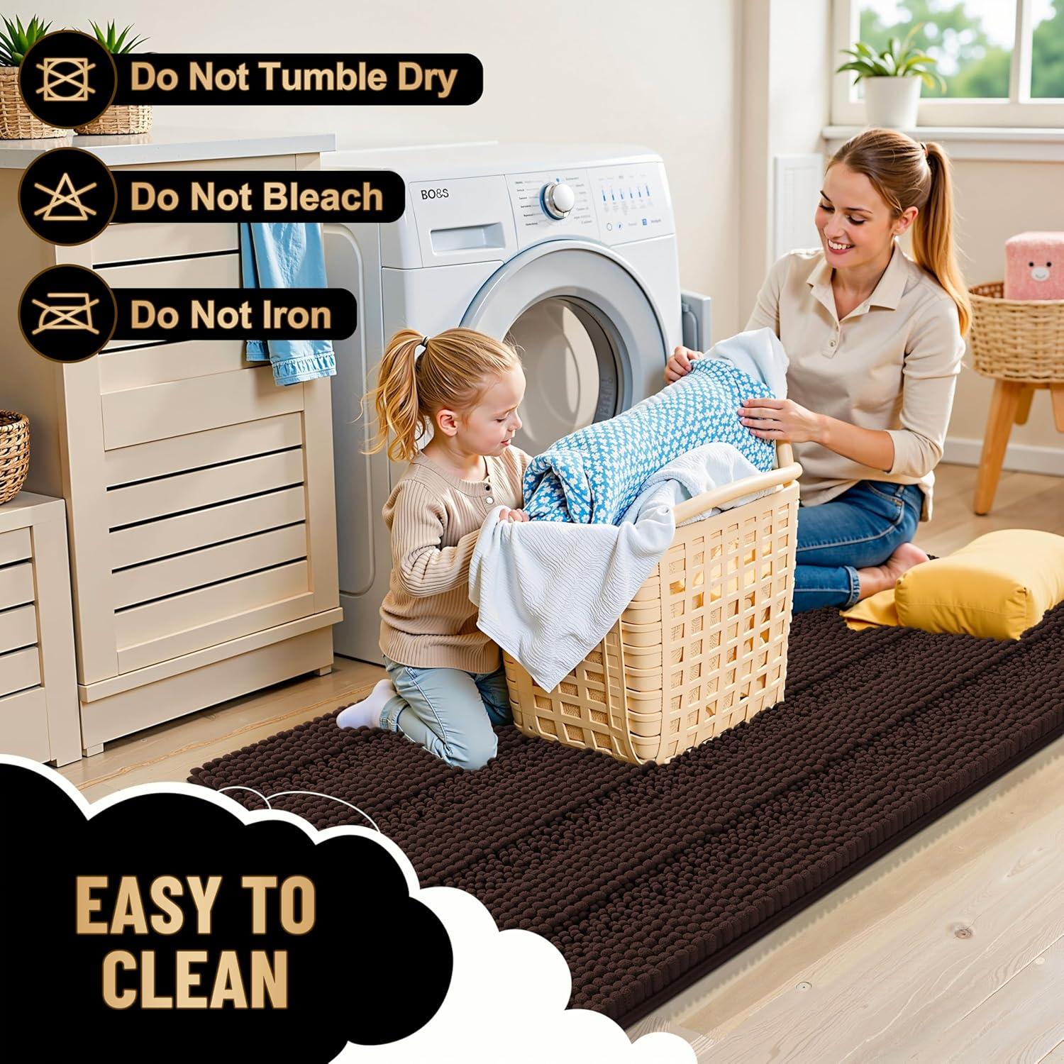 Fade-resistant and Quick-Drying – Our rugs feature premium chenille fabric that's not only ultra-absorbent but also dries quickly. These bathroom mats are easy to clean, and their fade-resistant quality ensures that you can machine wash and dry them as often as needed.