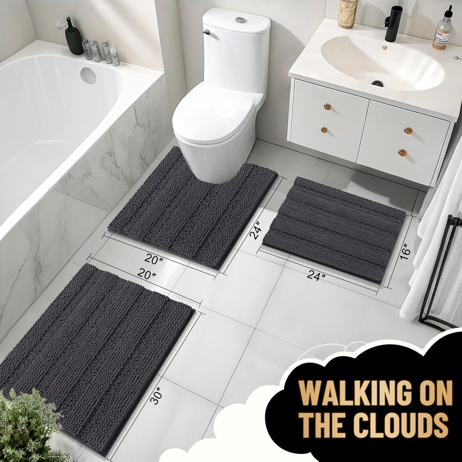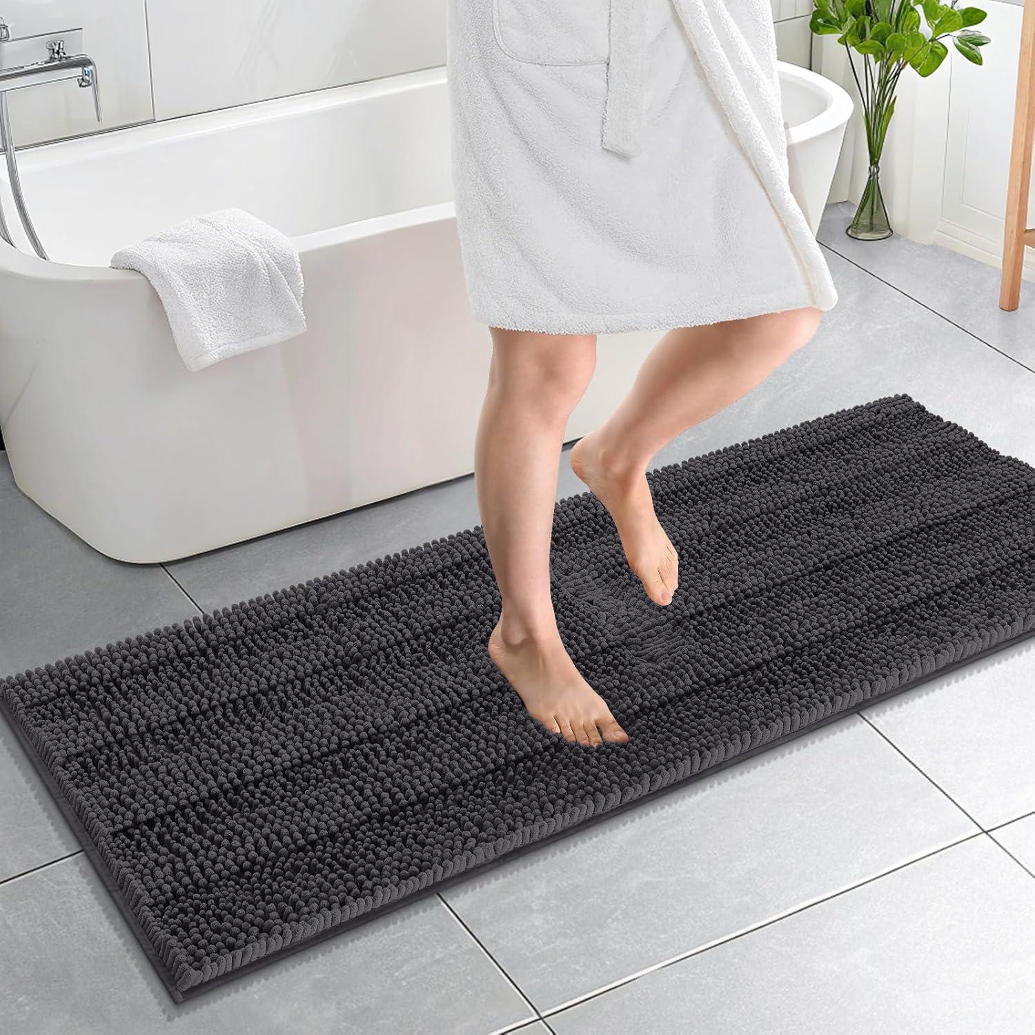 OLANLY Thick Bathroom Rugs 30x20, Extra Soft Absorbent Chenille Striped Bath Rugs, Rubber Backing, Machine Wash Dry, Bath Mats for Bathroom Floor, Tub and Shower, Home Decor Accessories, Grey(Dark Grey)