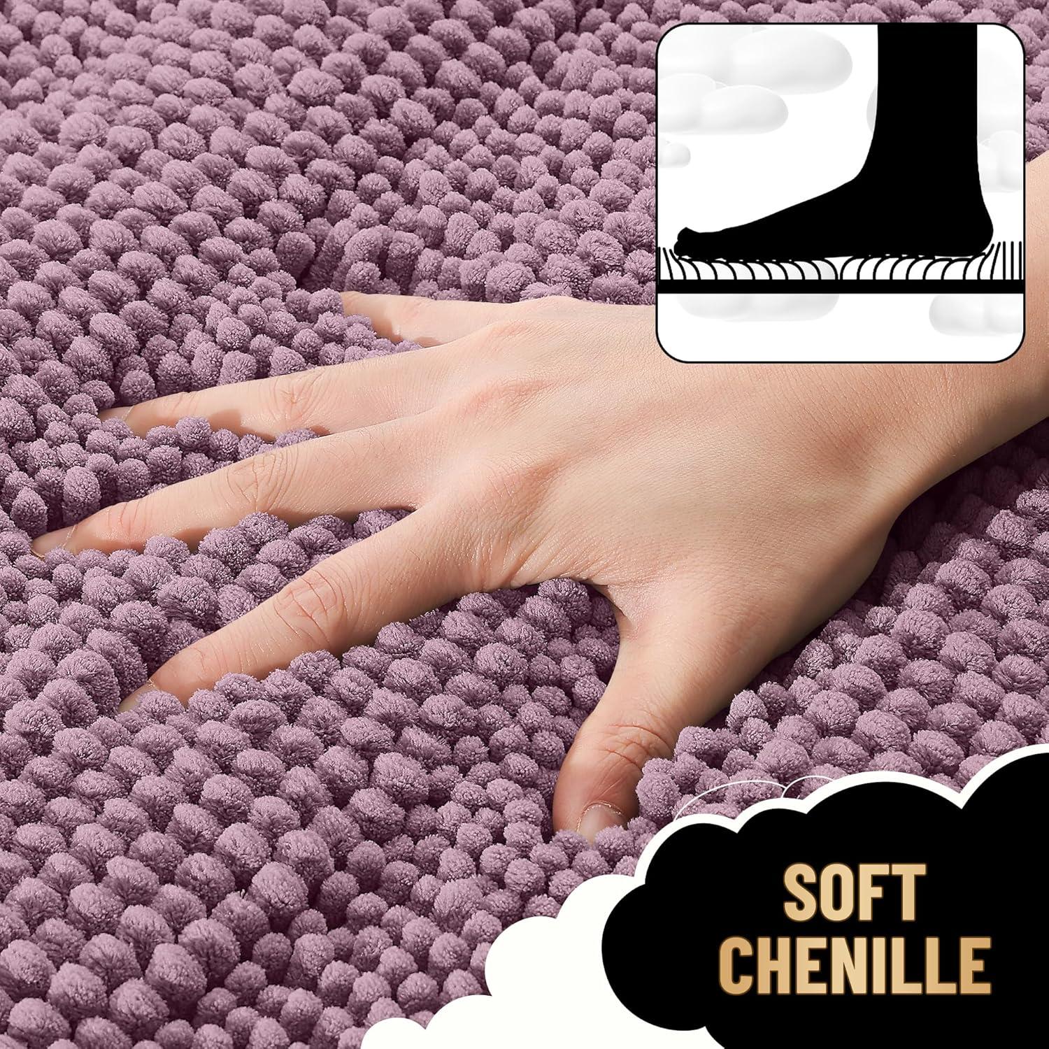 OLANLY Thick Bathroom Rugs 30x20, Extra Soft Absorbent Chenille Striped Bath Rugs, Rubber Backing, Machine Wash Dry, Bath Mats for Bathroom Floor, Tub and Shower, Home Decor Accessories, Grey(Deep Plum)