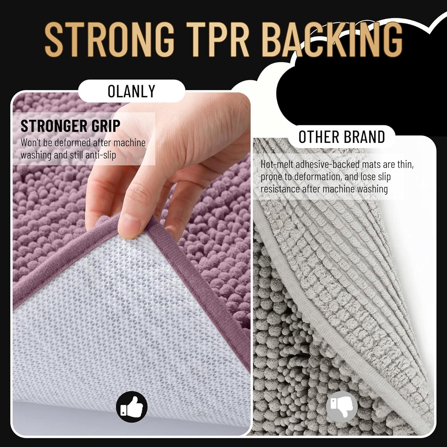 Ultra Absorbent – Meet OLANLY's absorbent bath rug with dense chenille, ensuring your bathroom stays clean and dry. Step out of the bath or shower and instantly dry your feet on this shaggy rug, helps protect floors from water. The mat's deep piles effectively trap moisture, allowing for a quick and neat drying process.