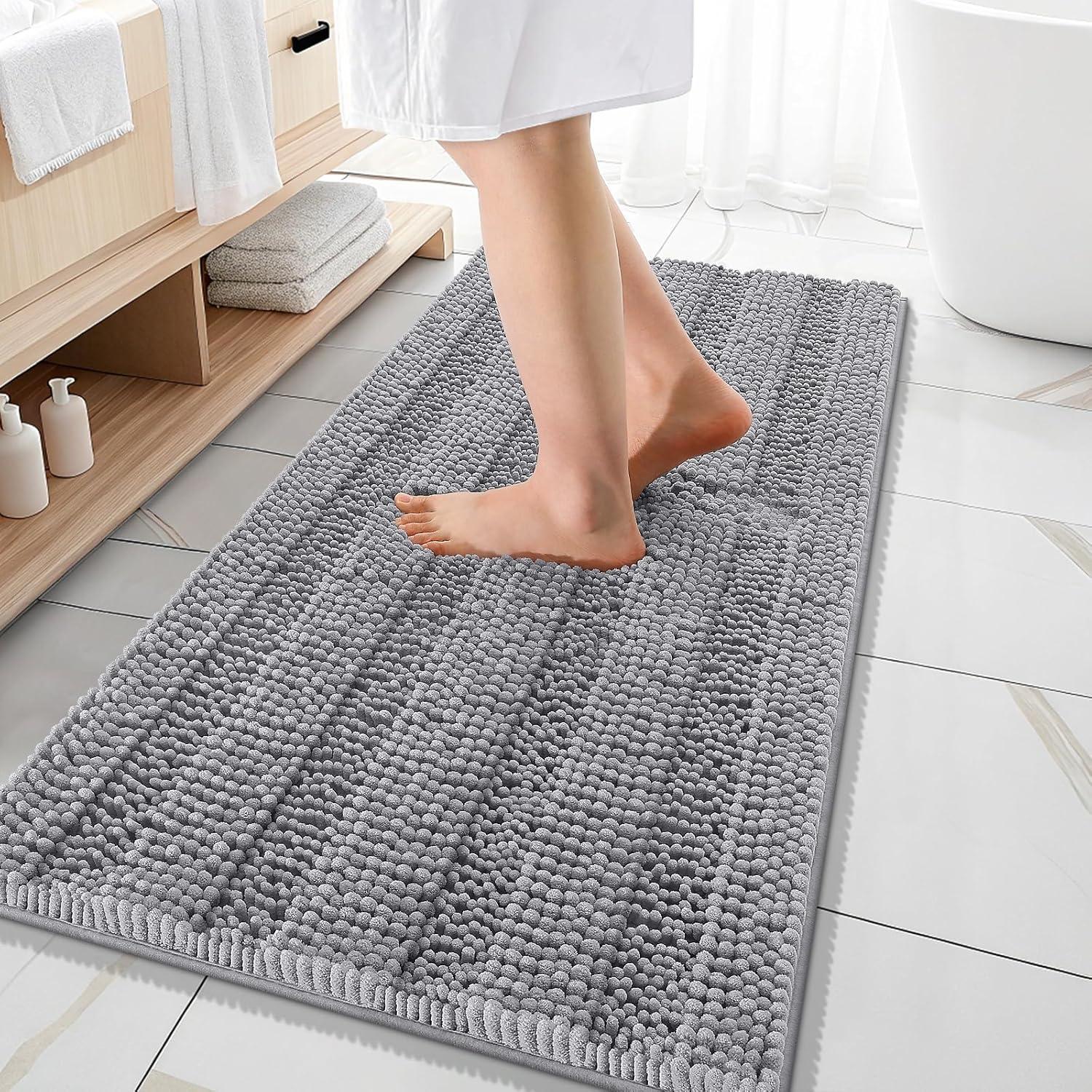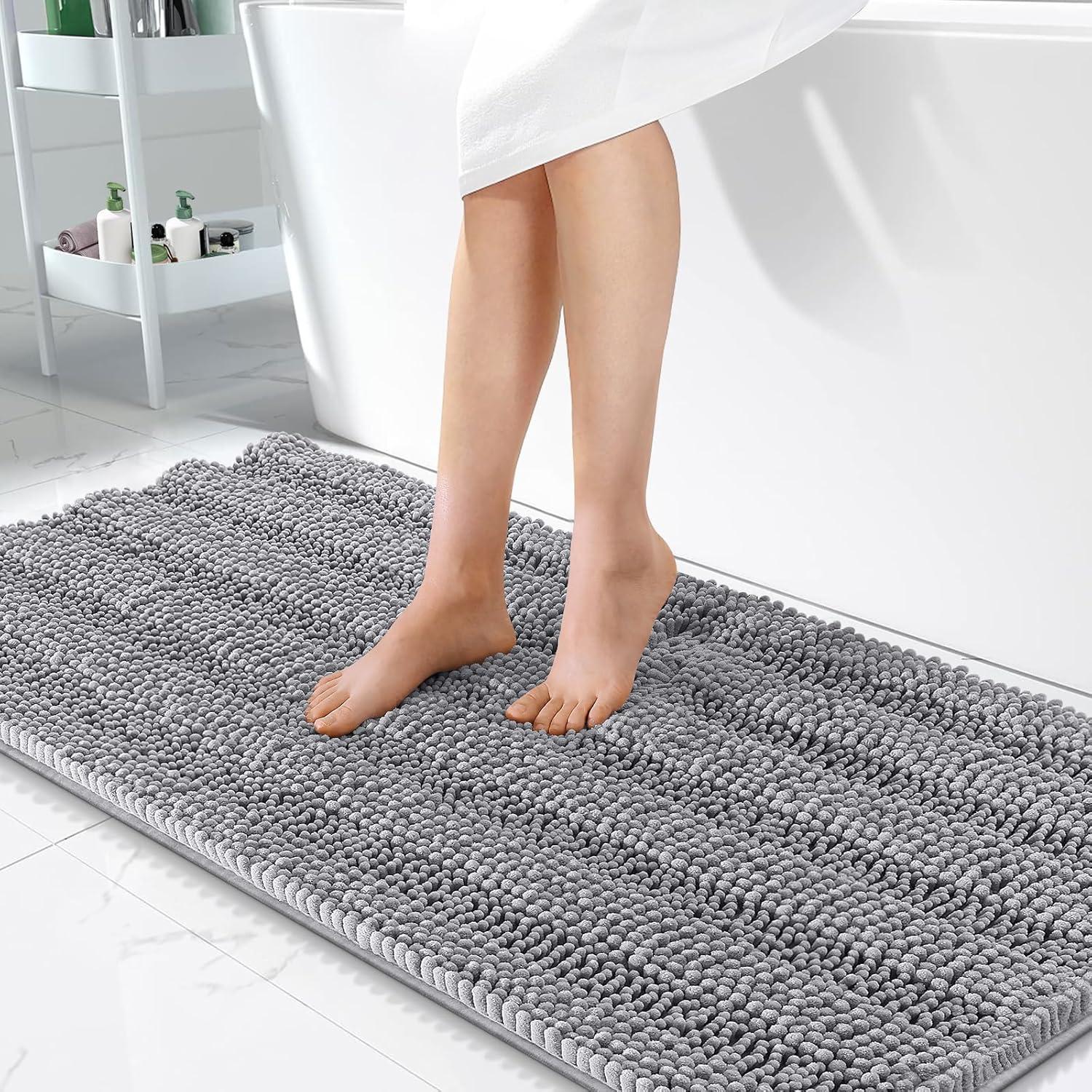 Ultra Absorbent – Meet OLANLY's absorbent bath rug with dense chenille, ensuring your bathroom stays clean and dry. Step out of the bath or shower and instantly dry your feet on this shaggy rug, helps protect floors from water. The mat's deep piles effectively trap moisture, allowing for a quick and neat drying process.