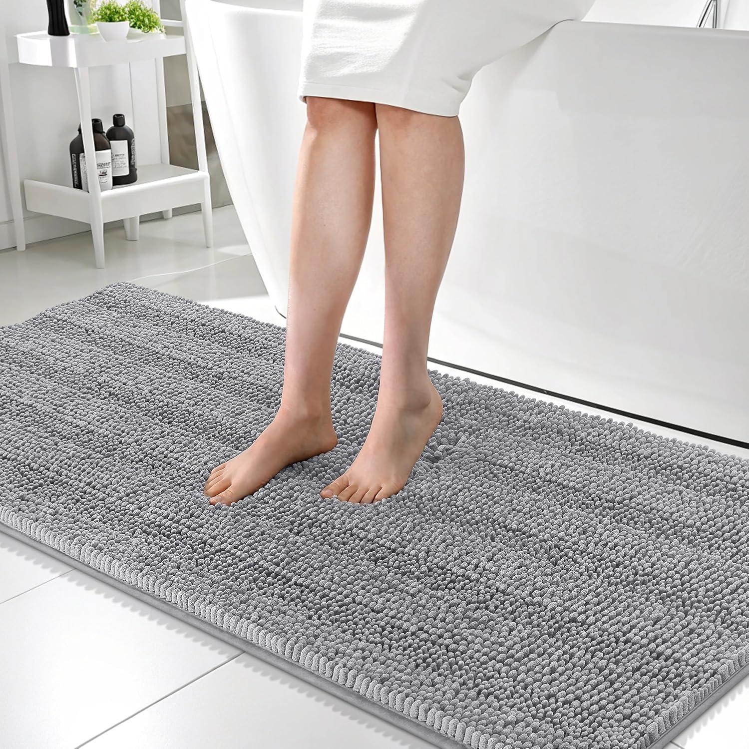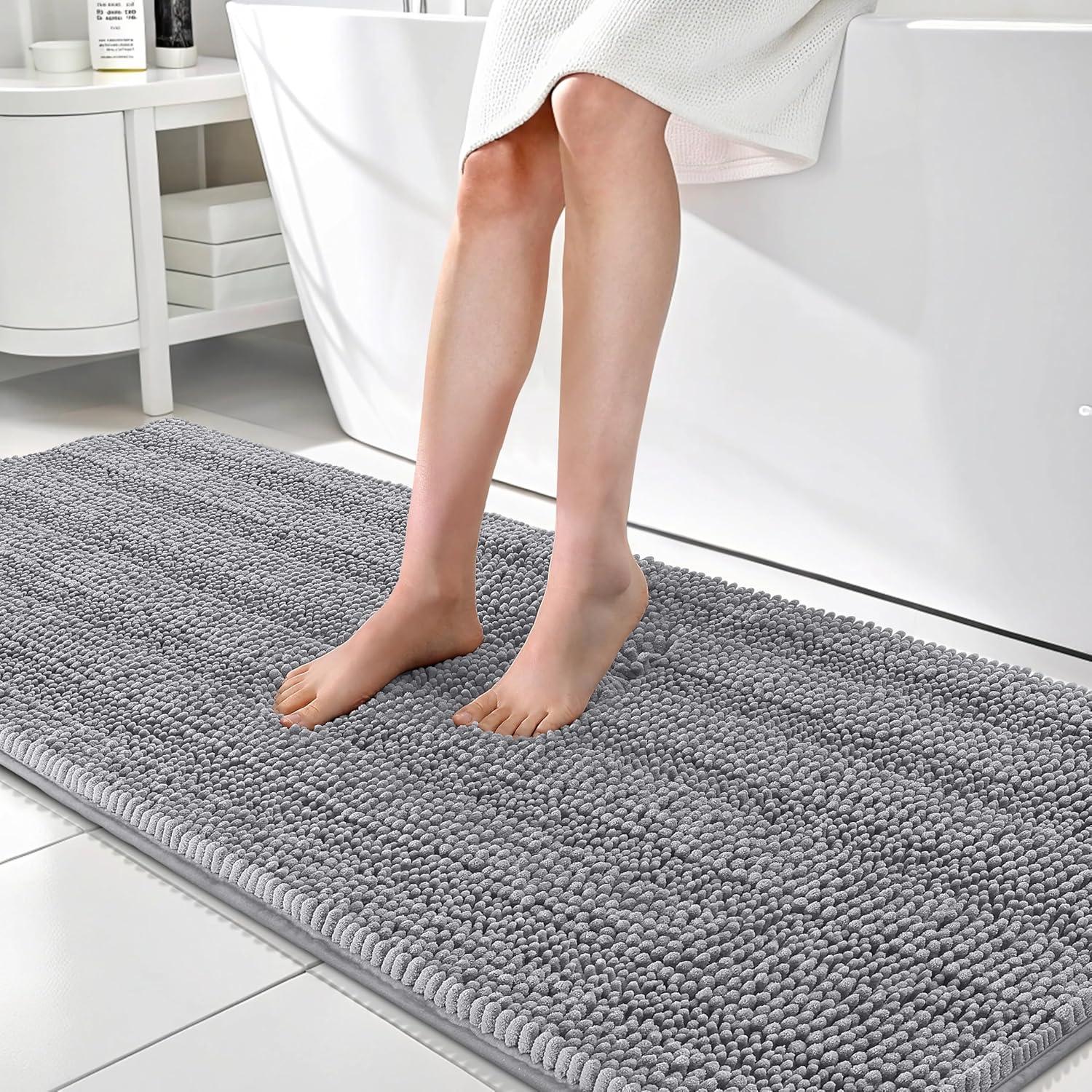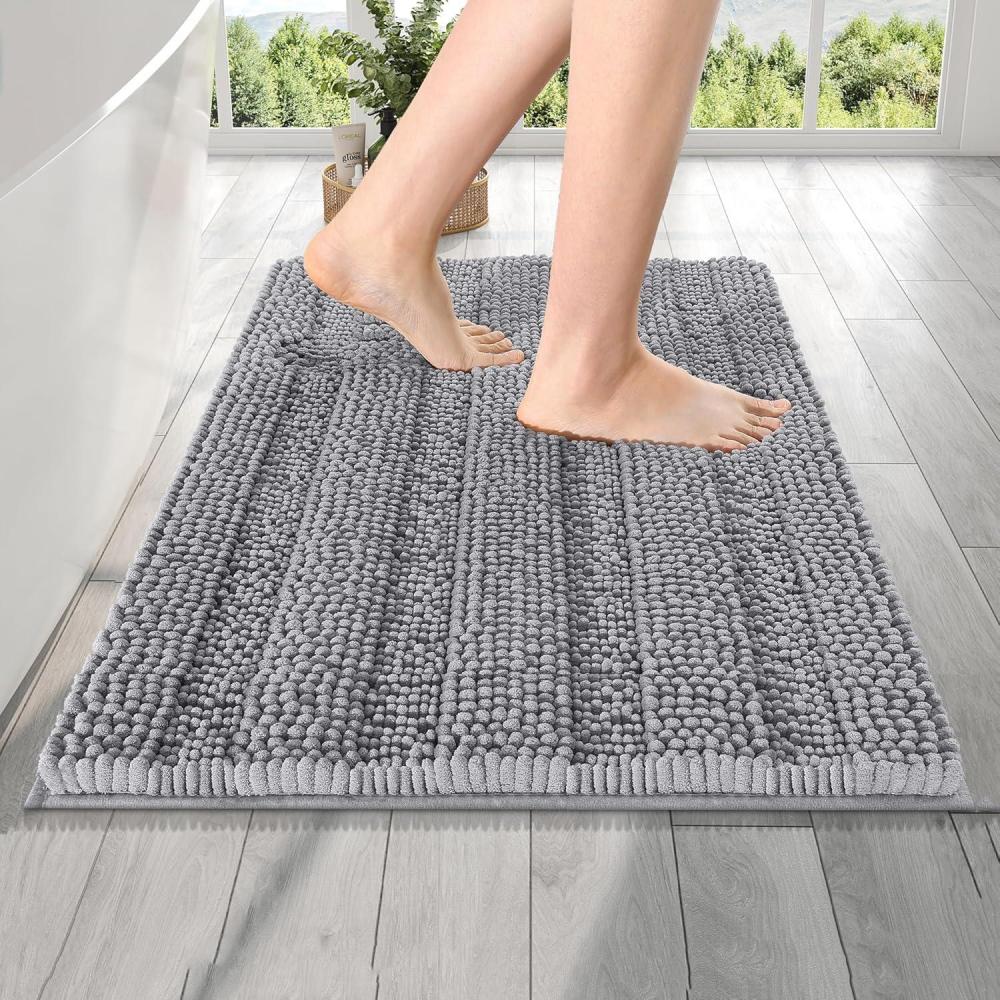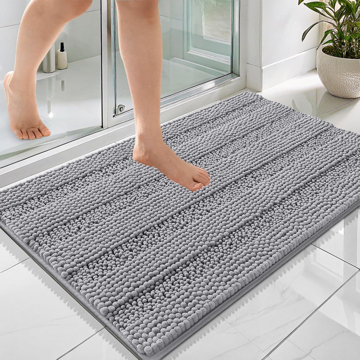 OLANLY Thick Bathroom Rugs 30x20, Extra Soft Absorbent Chenille Striped Bath Rugs, Rubber Backing, Machine Wash Dry, Bath Mats for Bathroom Floor, Tub and Shower, Home Decor Accessories, Grey(Grey)