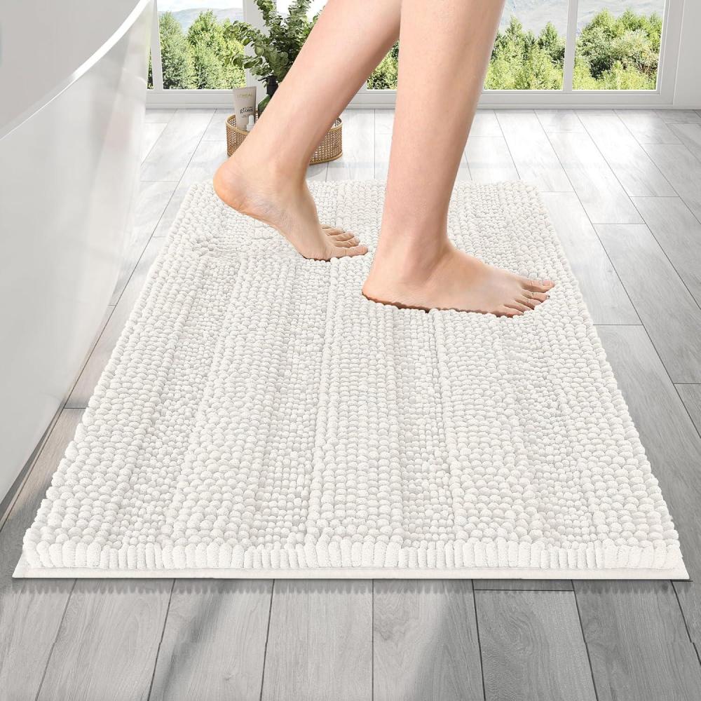 Ultra Absorbent – Meet OLANLY's absorbent bath rug with dense chenille, ensuring your bathroom stays clean and dry. Step out of the bath or shower and instantly dry your feet on this shaggy rug, helps protect floors from water. The mat's deep piles effectively trap moisture, allowing for a quick and neat drying process.