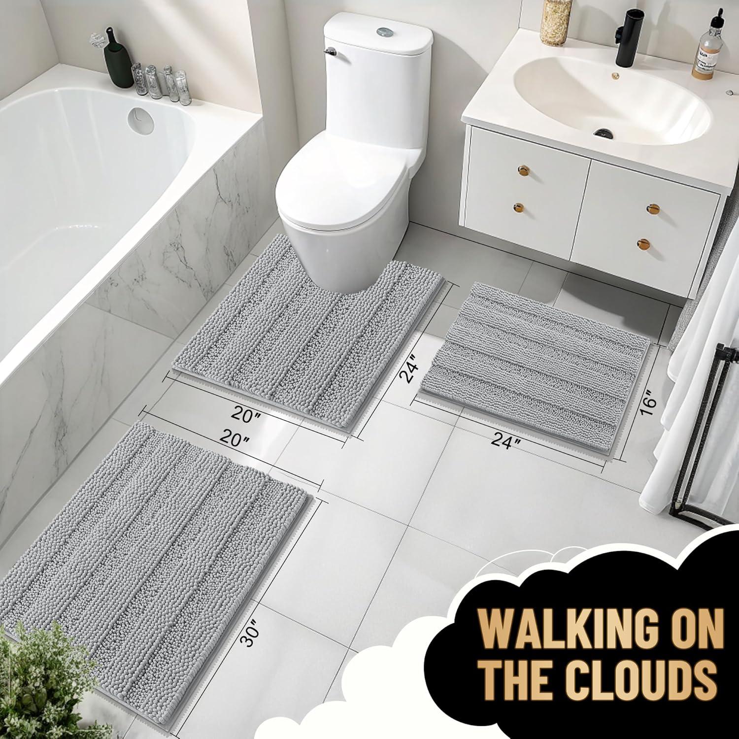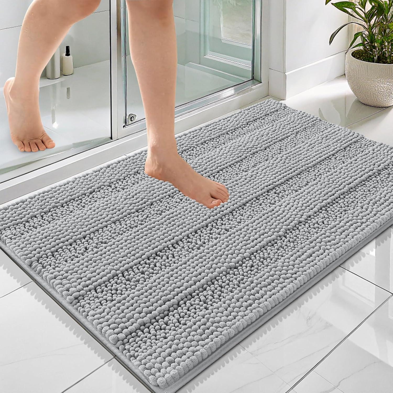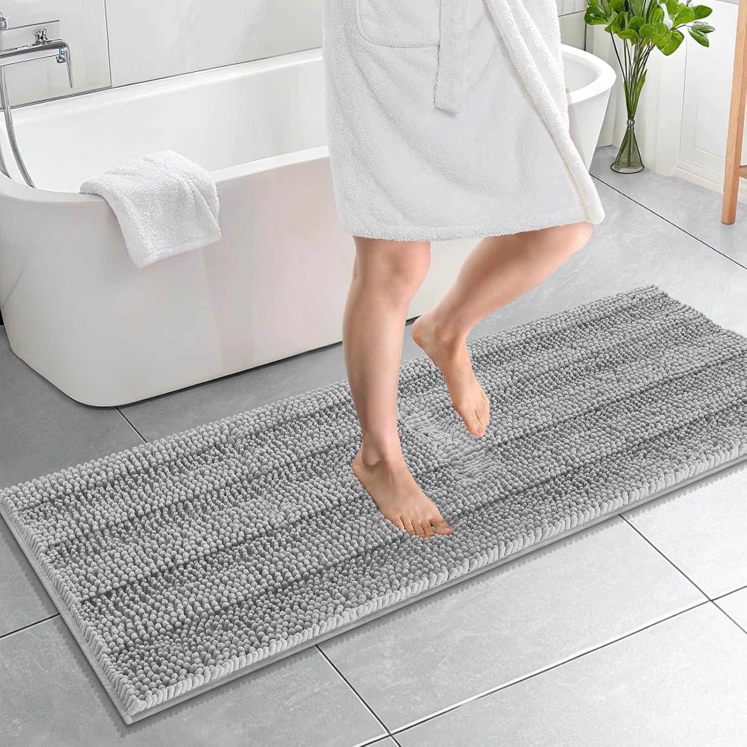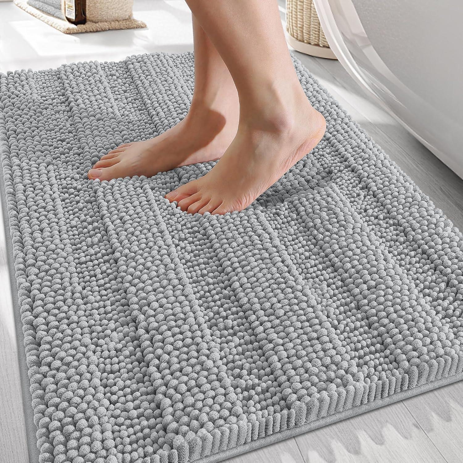 OLANLY Thick Bathroom Rugs 30x20, Extra Soft Absorbent Chenille Striped Bath Rugs, Rubber Backing, Machine Wash Dry, Bath Mats for Bathroom Floor, Tub and Shower, Home Decor Accessories, Grey(Light Grey)