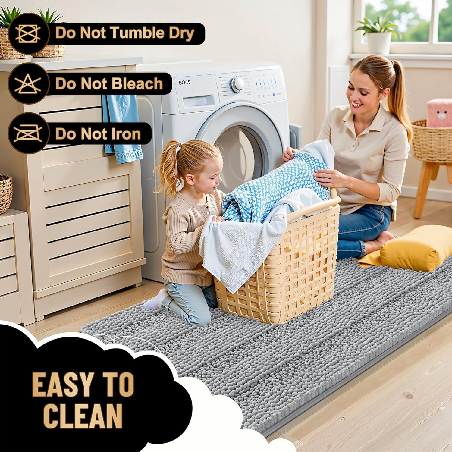 Fade-resistant and Quick-Drying – Our rugs feature premium chenille fabric that's not only ultra-absorbent but also dries quickly. These bathroom mats are easy to clean, and their fade-resistant quality ensures that you can machine wash and dry them as often as needed.