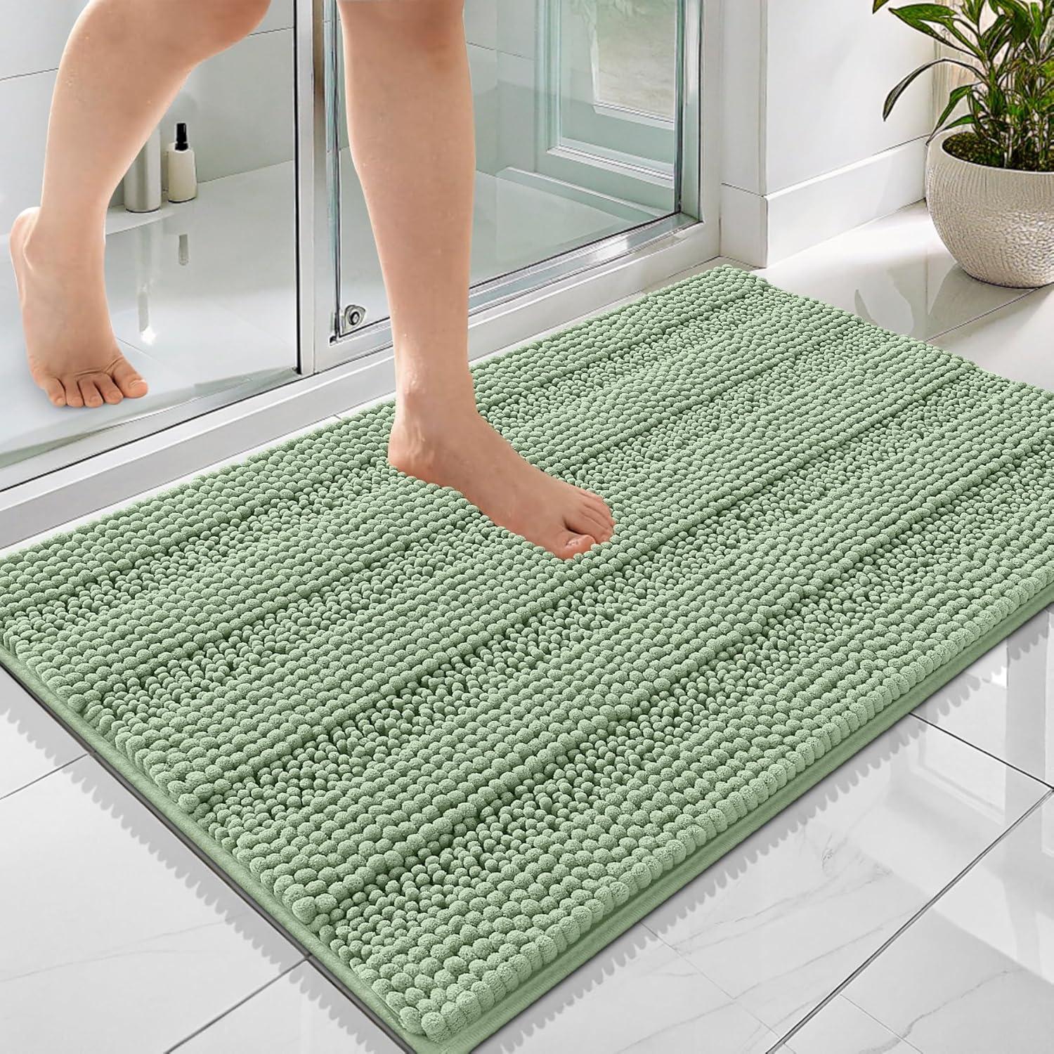 OLANLY Thick Bathroom Rugs 30×20, Extra Soft Absorbent Chenille Striped Bath Rugs, Rubber Backing, Machine Wash Dry, Bath Mats for Bathroom Floor, Tub and Shower, Home Decor Accessories, Grey(Sage Green)