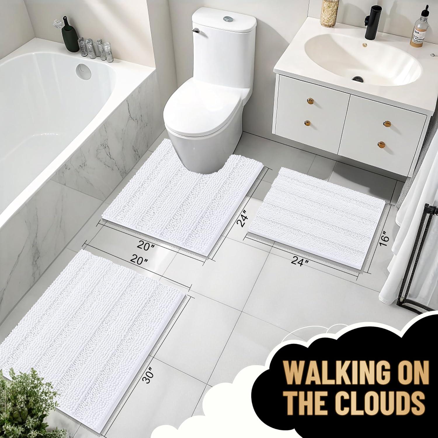 Fade-resistant and Quick-Drying – Our rugs feature premium chenille fabric that's not only ultra-absorbent but also dries quickly. These bathroom mats are easy to clean, and their fade-resistant quality ensures that you can machine wash and dry them as often as needed.
