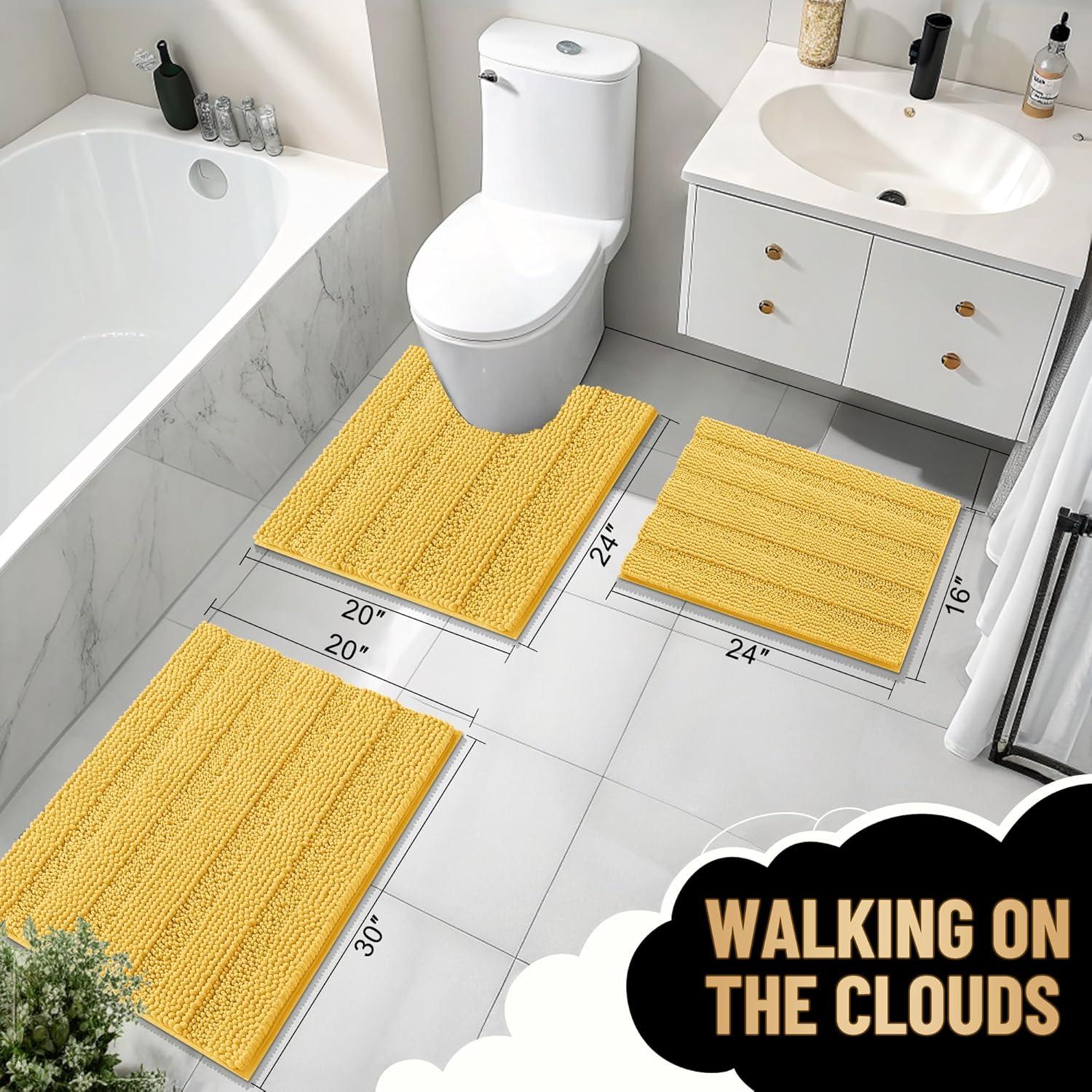 Fade-resistant and Quick-Drying – Our rugs feature premium chenille fabric that's not only ultra-absorbent but also dries quickly. These bathroom mats are easy to clean, and their fade-resistant quality ensures that you can machine wash and dry them as often as needed.
