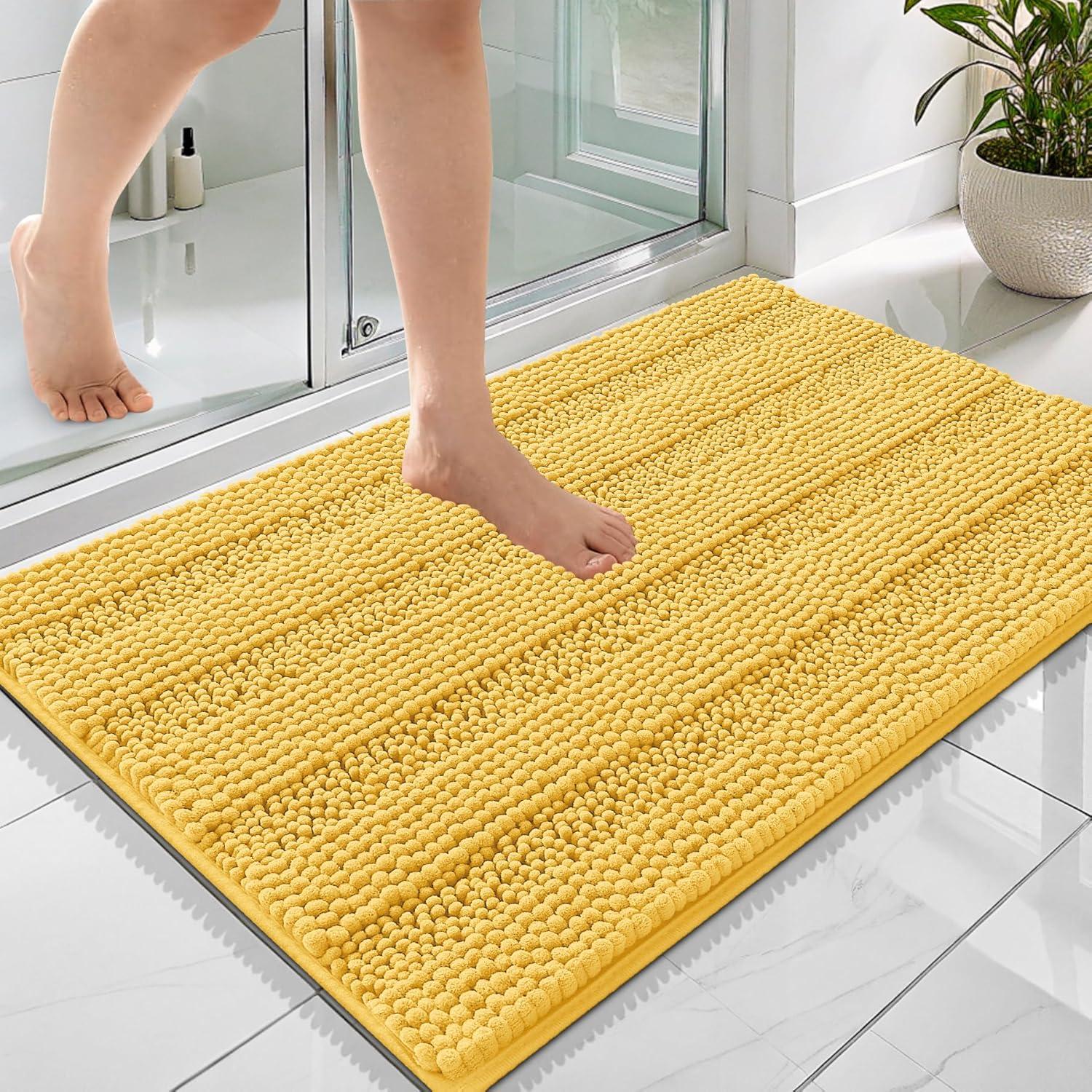 OLANLY Thick Bathroom Rugs 30x20, Extra Soft Absorbent Chenille Striped Bath Rugs, Rubber Backing, Machine Wash Dry, Bath Mats for Bathroom Floor, Tub and Shower, Home Decor Accessories, Grey(Yellow)