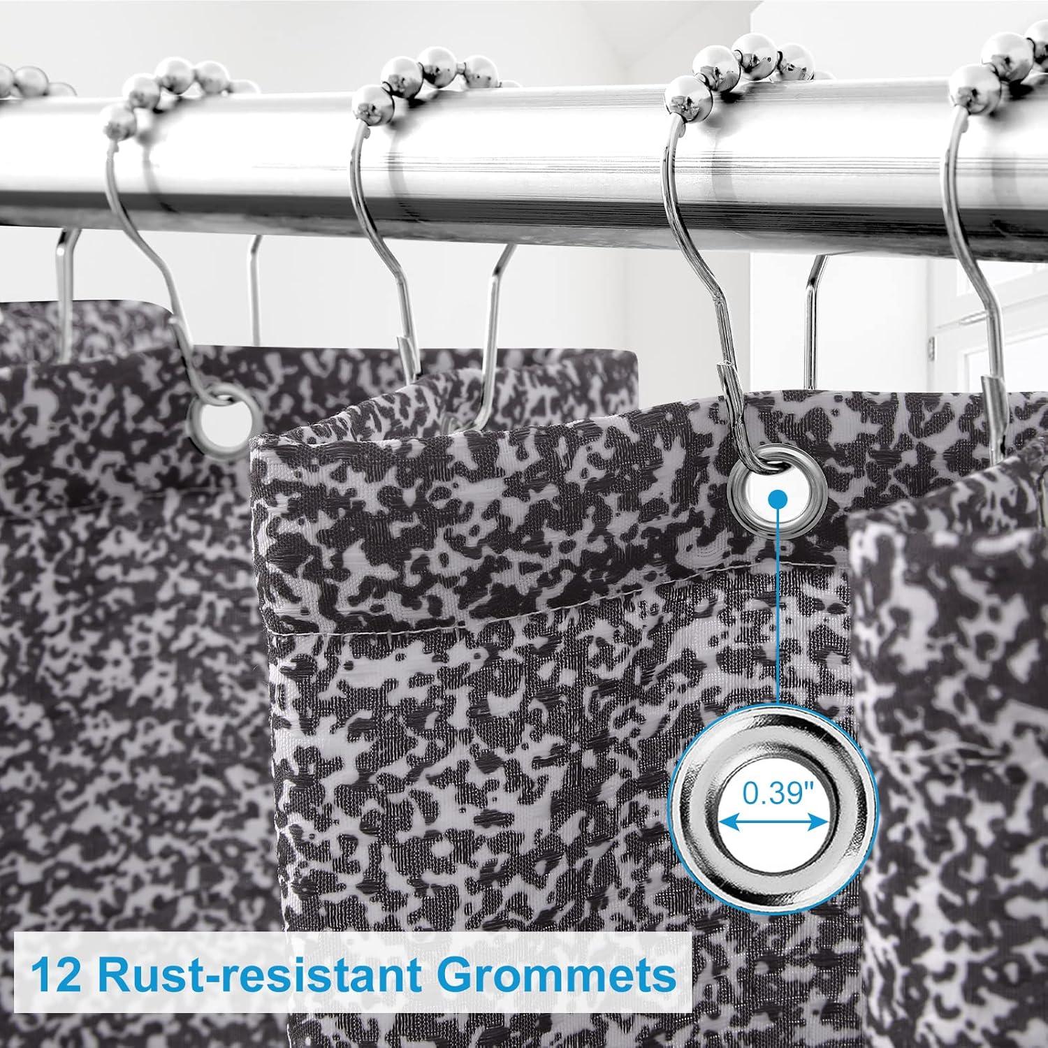 [Easy to Install] The OLANLY shower curtain comes with twelve rust-resistant grommets that can easily fit most common shower hooks or rings (not included). Measuring at 72×72 inches, it can easily fit the majority of regular bathtubs and showers.