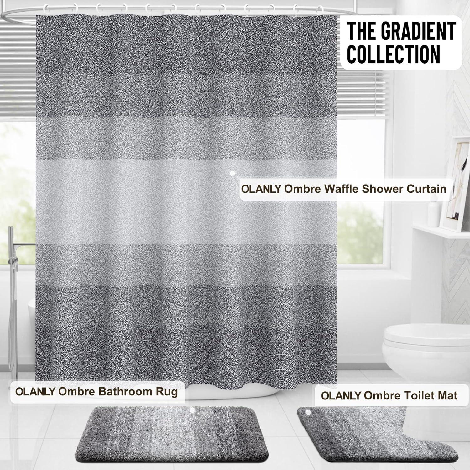 [Water Repellant] The quick-drying nature of the material ensures that water rolls off easily, keeping your grey ombre waffle shower curtain clean.