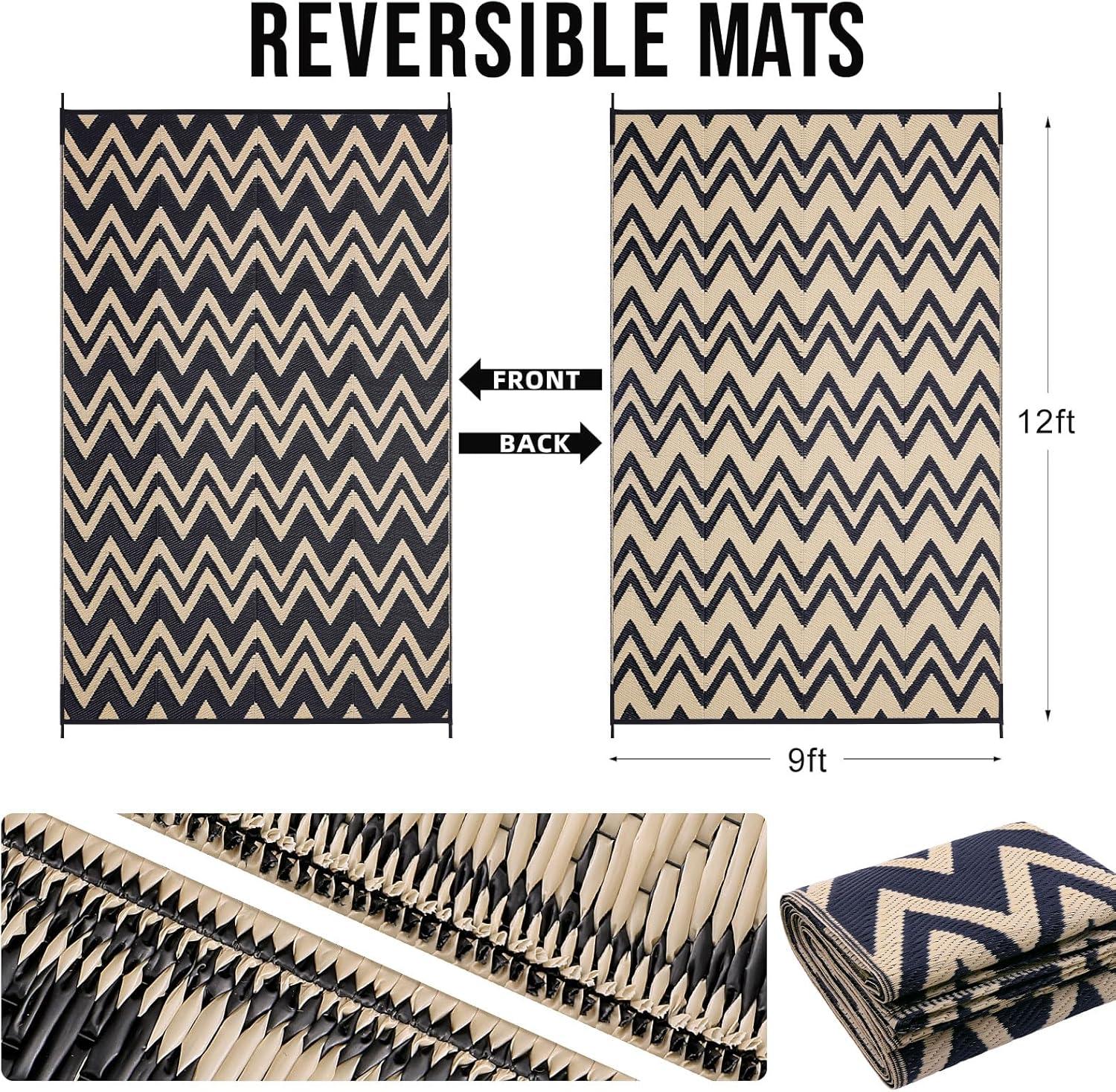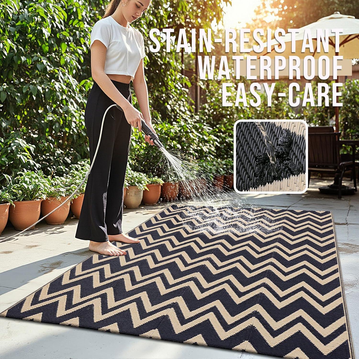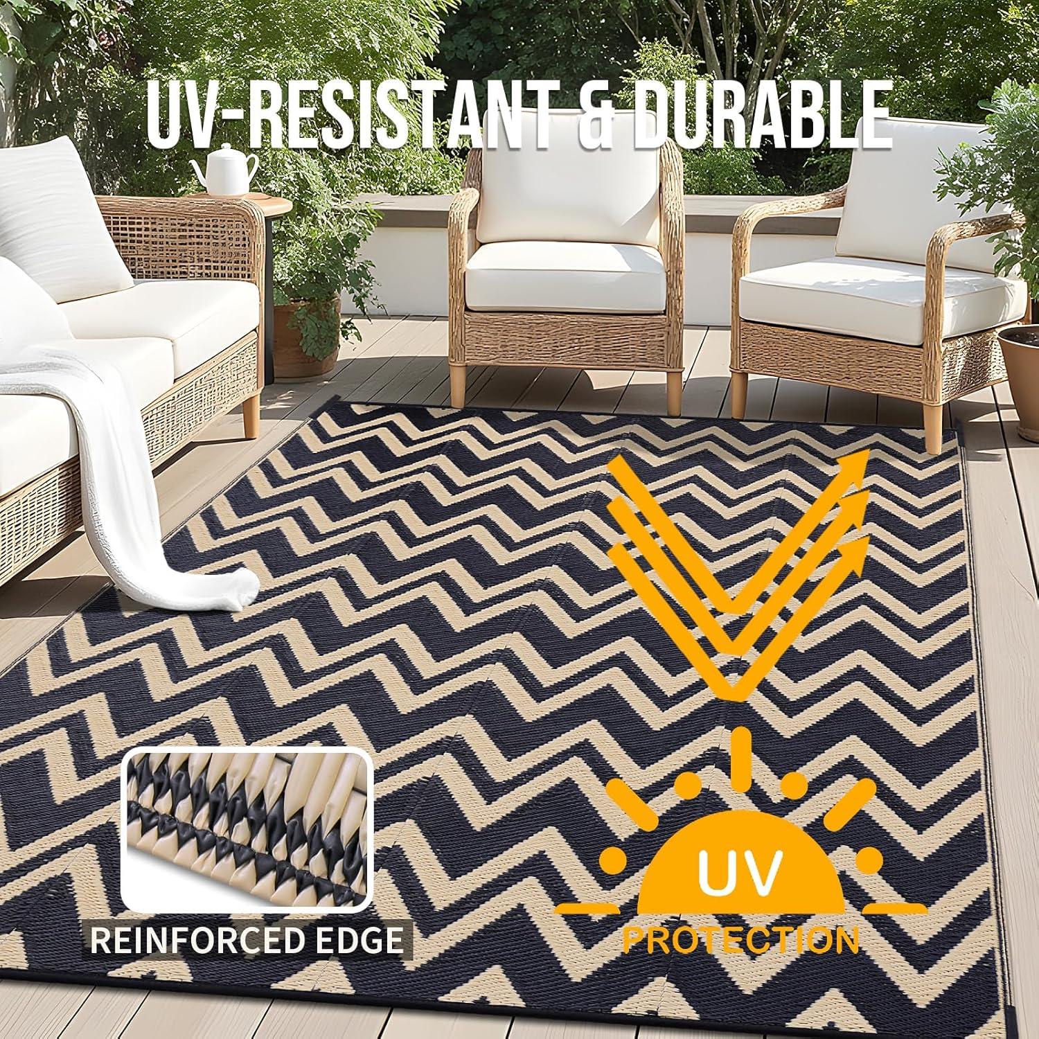 Double the Style and Fun: Featuring a reversible design with a modern chevron pattern on both sides, our outdoor patio rug lets you change up your space in an instant. It's perfect for patios, RV's, porches, decks, backyards, and more!