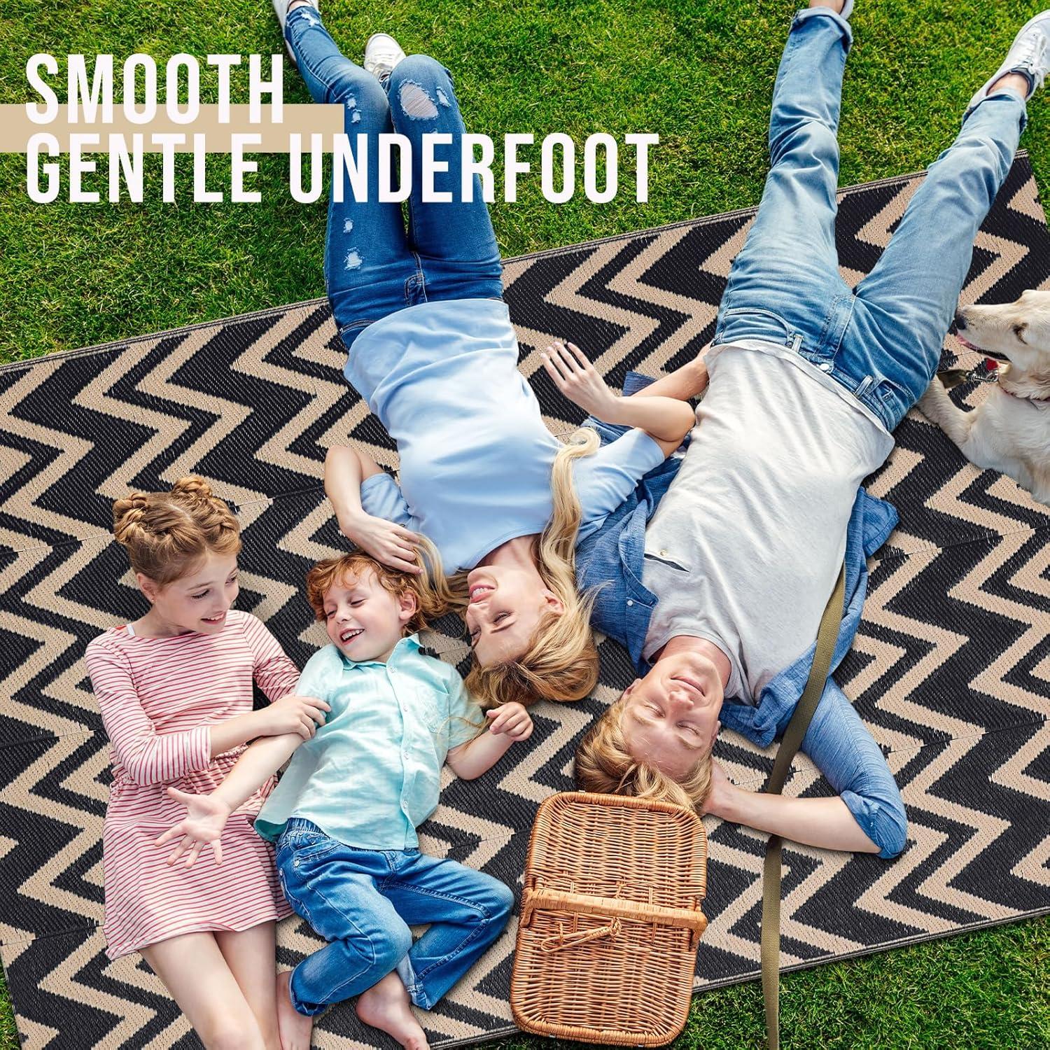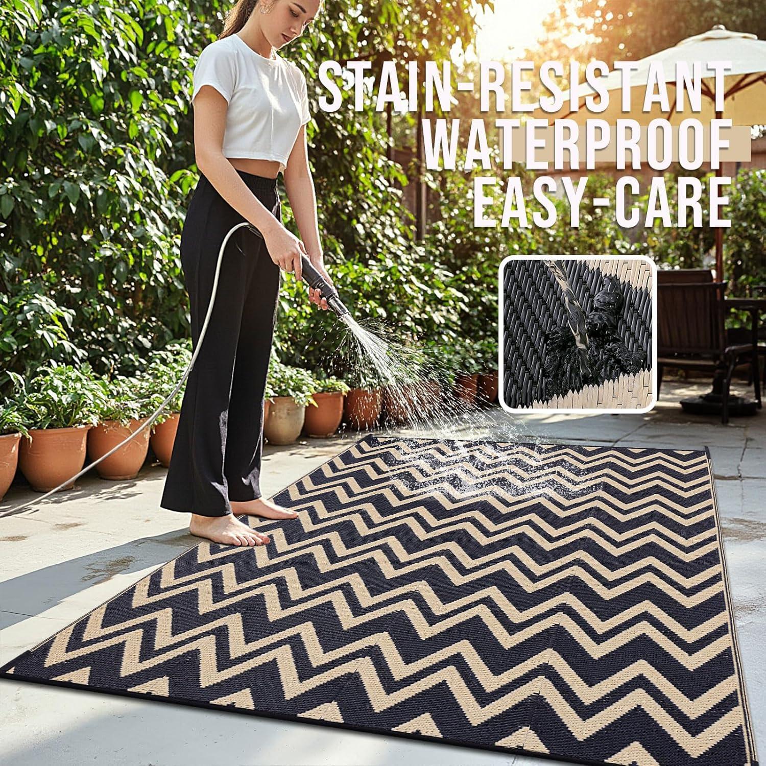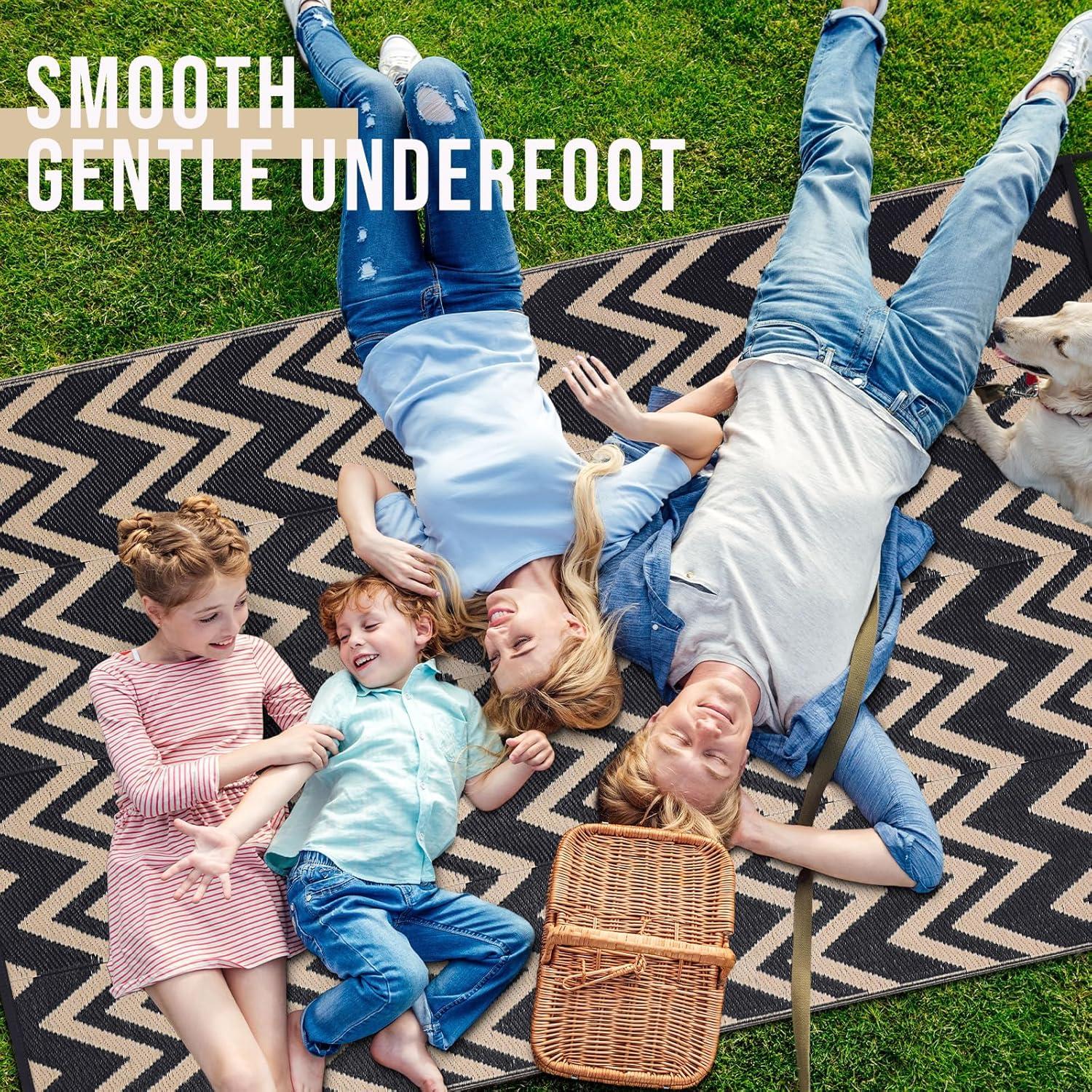 Stain-resistant & Easy-care: Crafted from recycled plastic straws, our camping rugs are waterproof, fast-drying, and built to handle anything. They're also a sustainable choice for your outdoor adventures, made from repurposed materials! Say goodbye to stains! Mud, grass, and spills simply rinse away with water, leaving your rug looking fresh and new.