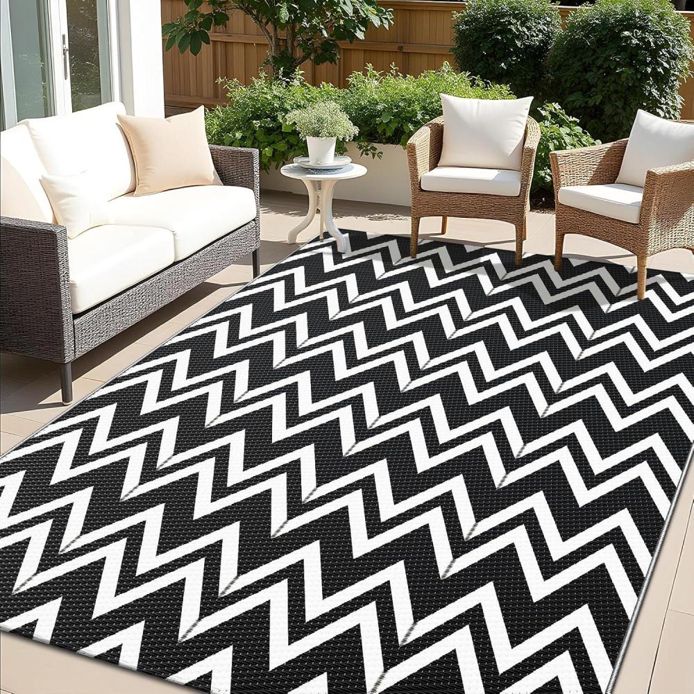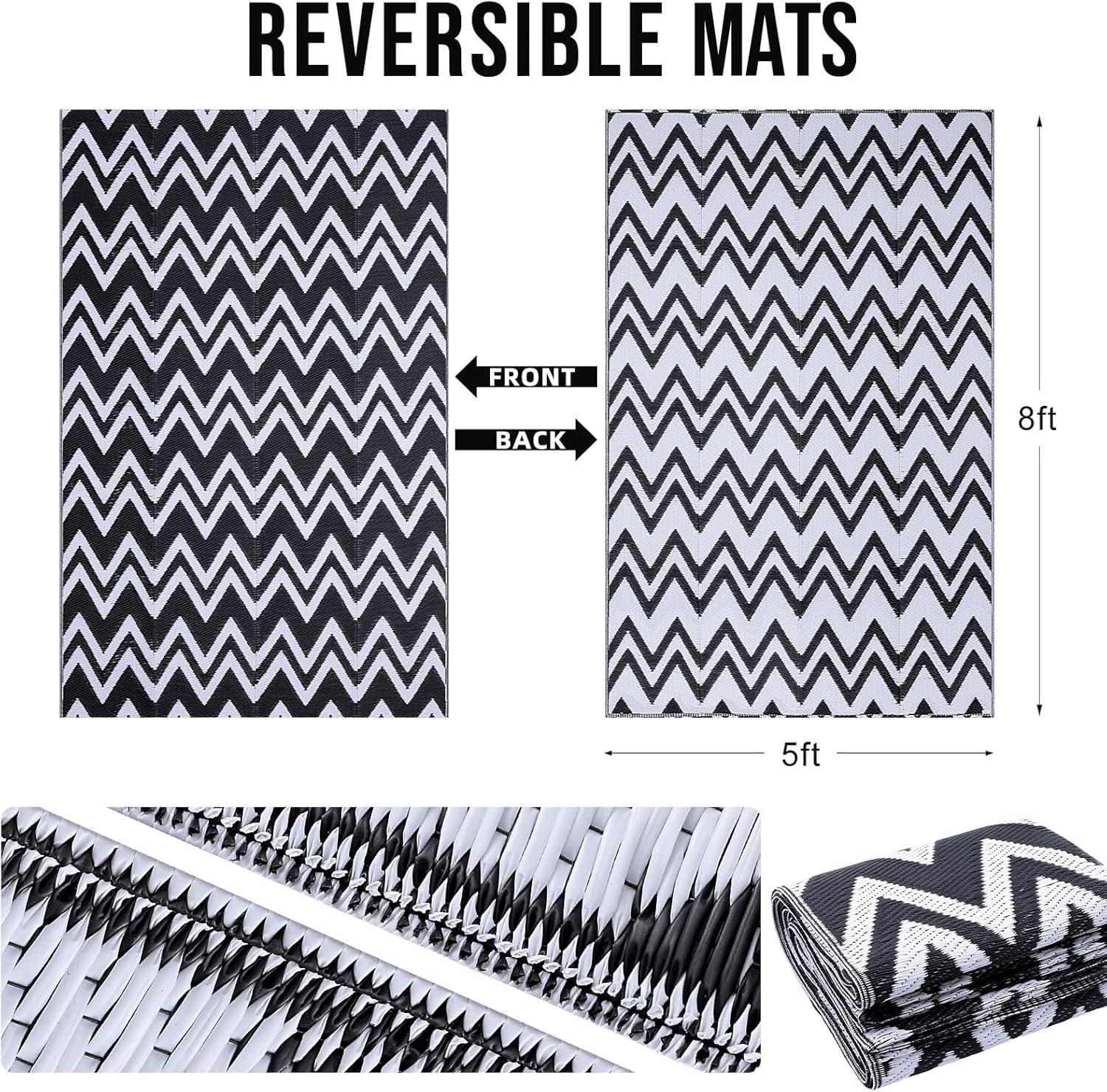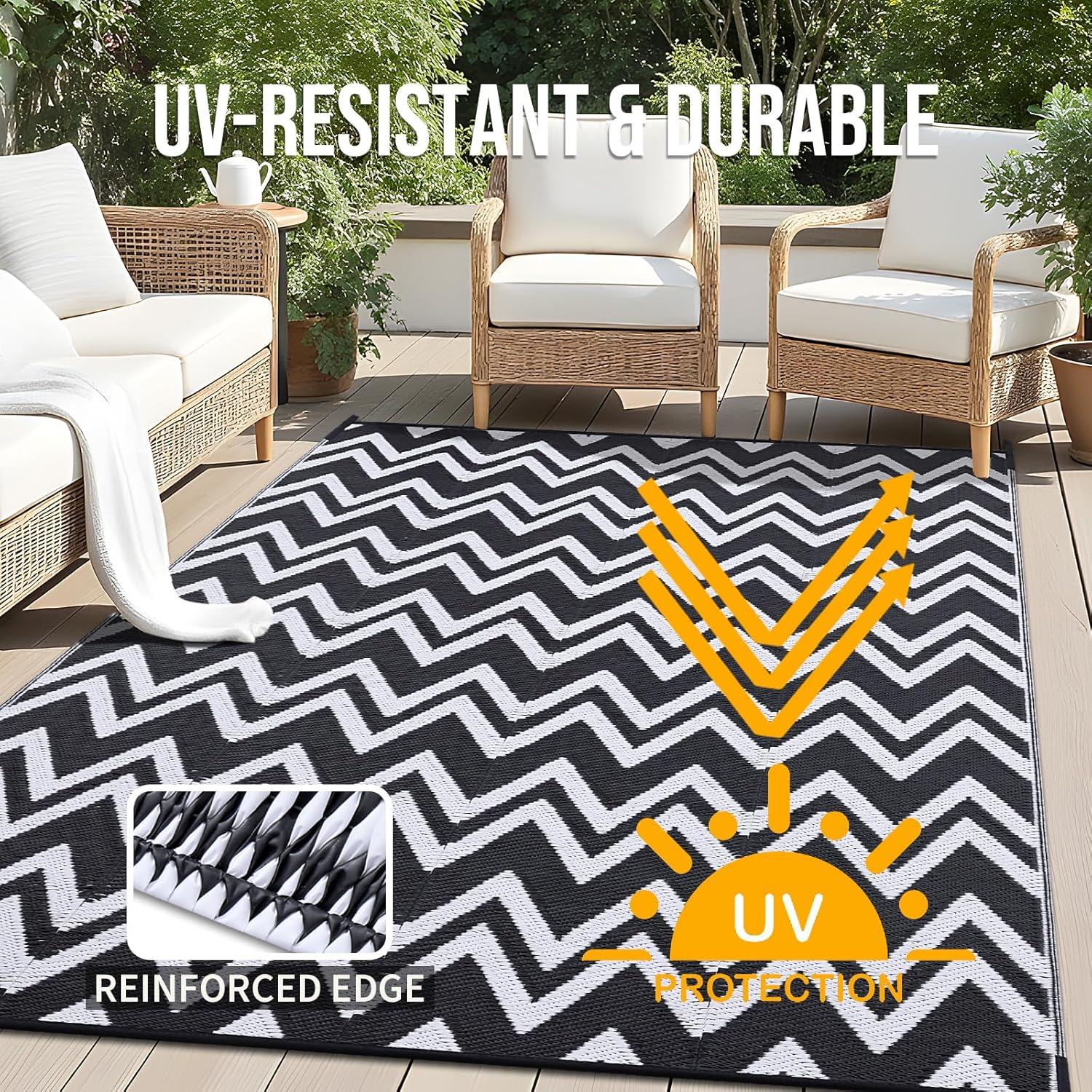 Double the Style and Fun: Featuring a reversible design with a modern chevron pattern on both sides, our outdoor patio rug lets you change up your space in an instant. It's perfect for patios, RV's, porches, decks, backyards, and more!