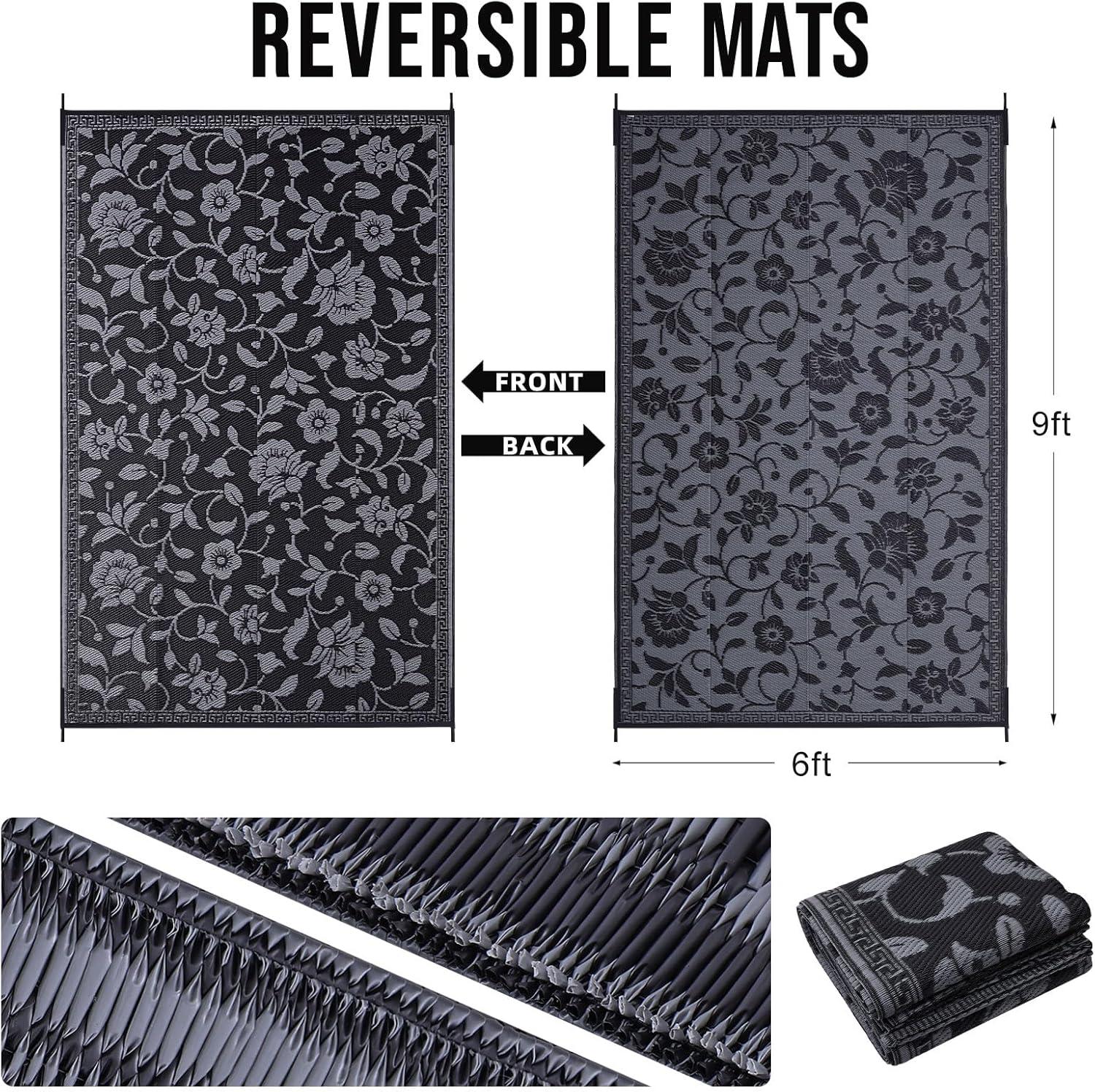 Floral Aesthetic: Make a statement in your outdoor living space with this reversible patio rug, featuring a unique floral pattern. This plastic rug not only enhances the look of your area, but also creates an inviting atmosphere, transforming your space with both style and personality.