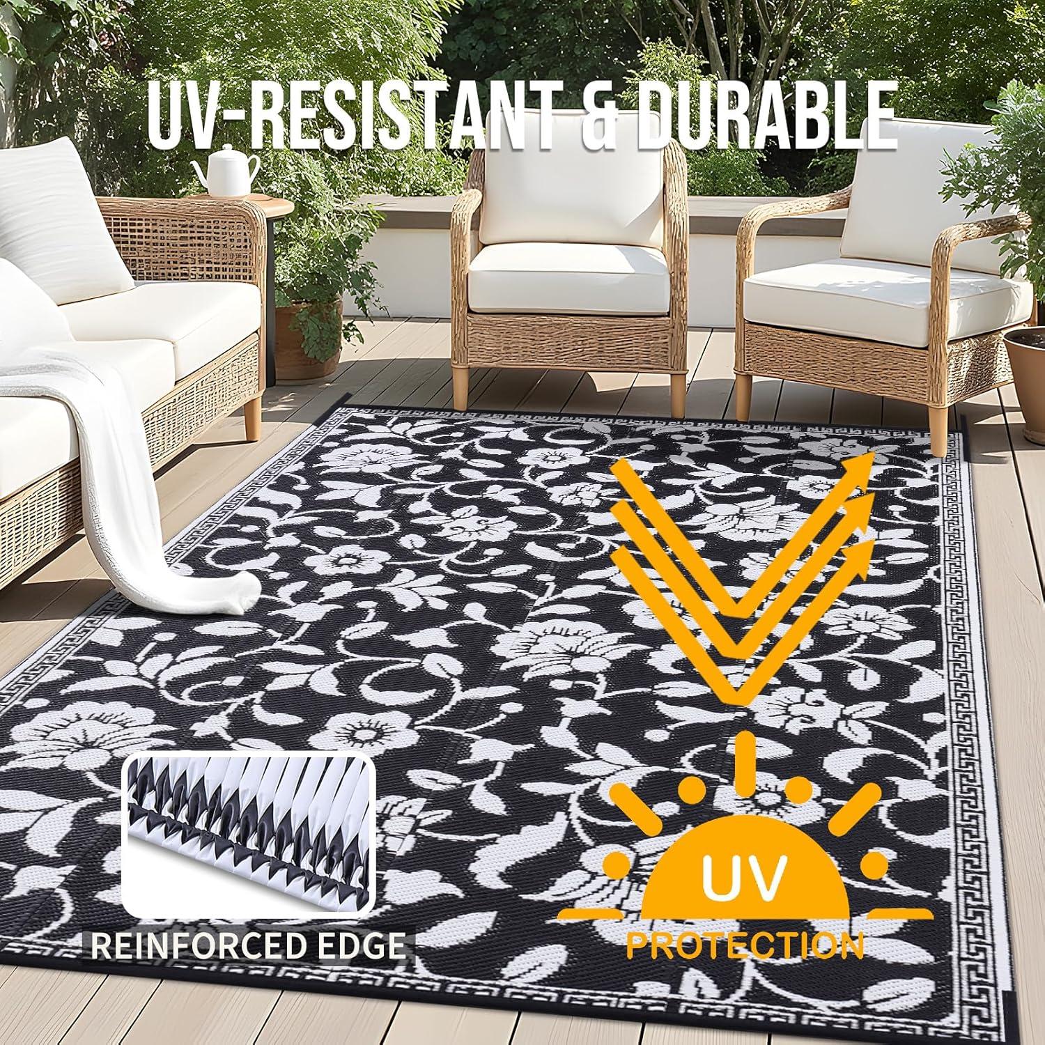 Floral Aesthetic: Make a statement in your outdoor living space with this reversible patio rug, featuring a unique floral pattern. This plastic rug not only enhances the look of your area, but also creates an inviting atmosphere, transforming your space with both style and personality.
