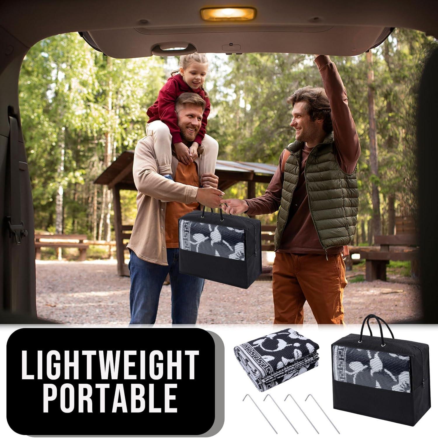 Lightweight & Portable: Our RV rug is lightweight and easy to transport, making it perfect for any outdoor adventure. It comes complete with a convenient carrying case, allowing you to seamlessly enjoy style and comfort wherever you go.