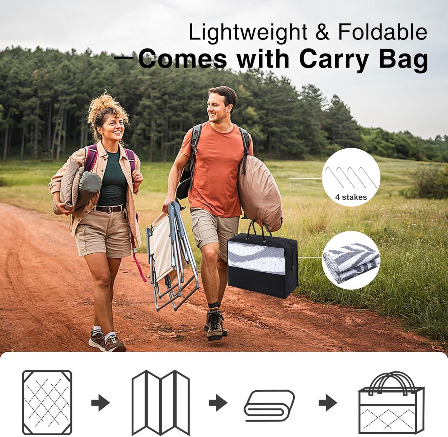 Portable & Convenient: Lightweight and foldable, our waterproof rugs are easy to transport and store, making them ideal for travel and camping. They even come with a matching carry case for effortless portability.