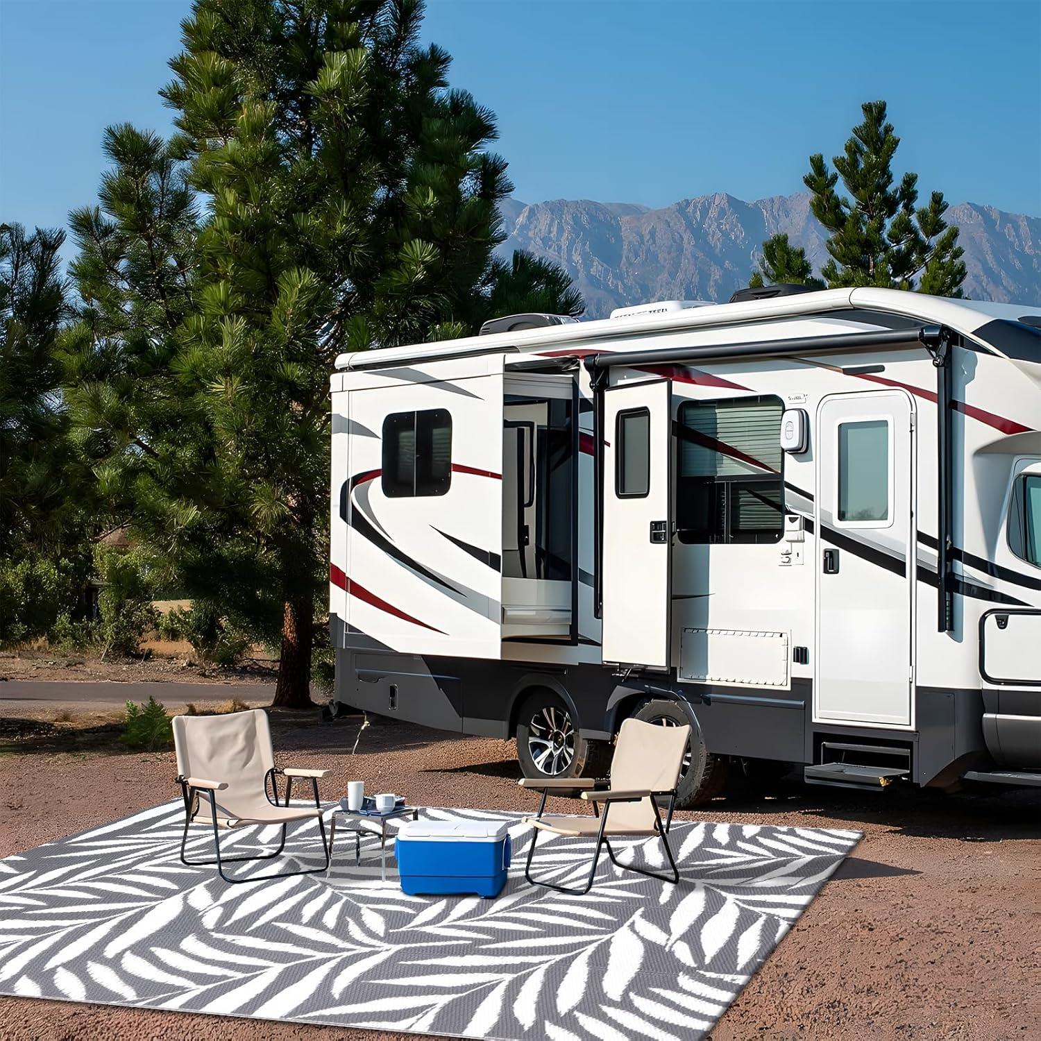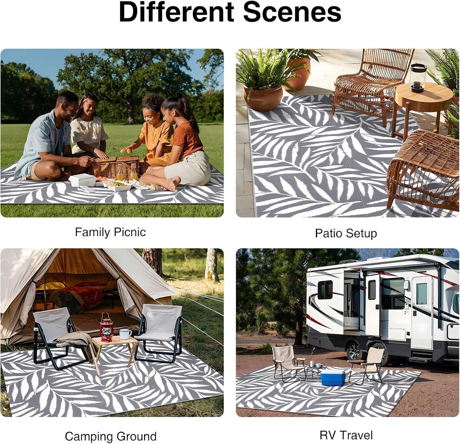 Stylish & Functional: Our reversible camping rugs feature tropical leaf patterns on both sides, adding a touch of vibrant style to patios, RV's, porches, decks, backyards, and any outdoor space.