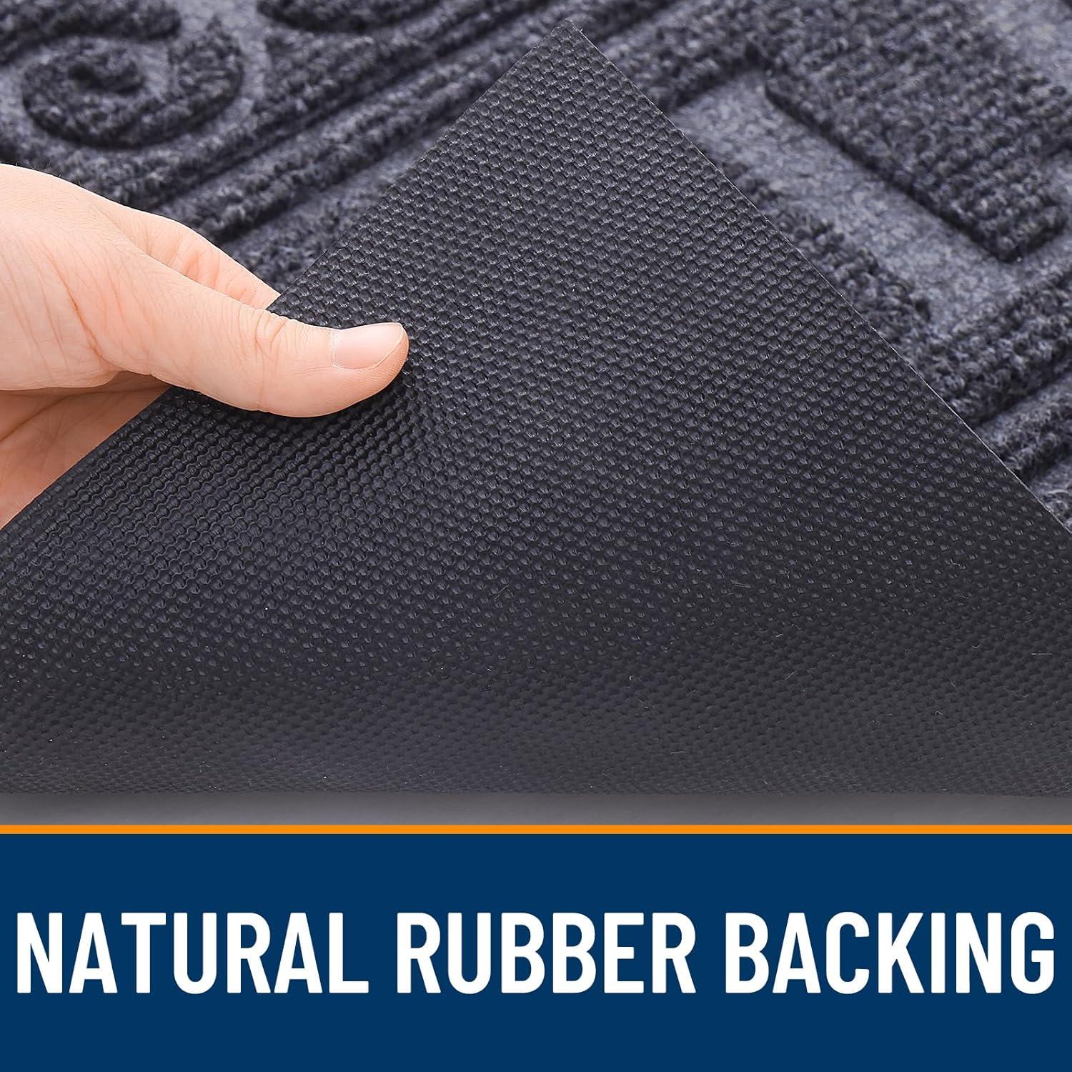 [Sturdy Natural Rubber Backing] OLANLY front door entryway mat boasts a natural rubber backing ensures superior strength, tear resistance, and minimal odor, making it a durable choice for any entrance. The 0.2-inch ultra-thin design allows you to effortlessly open the door without getting stuck.