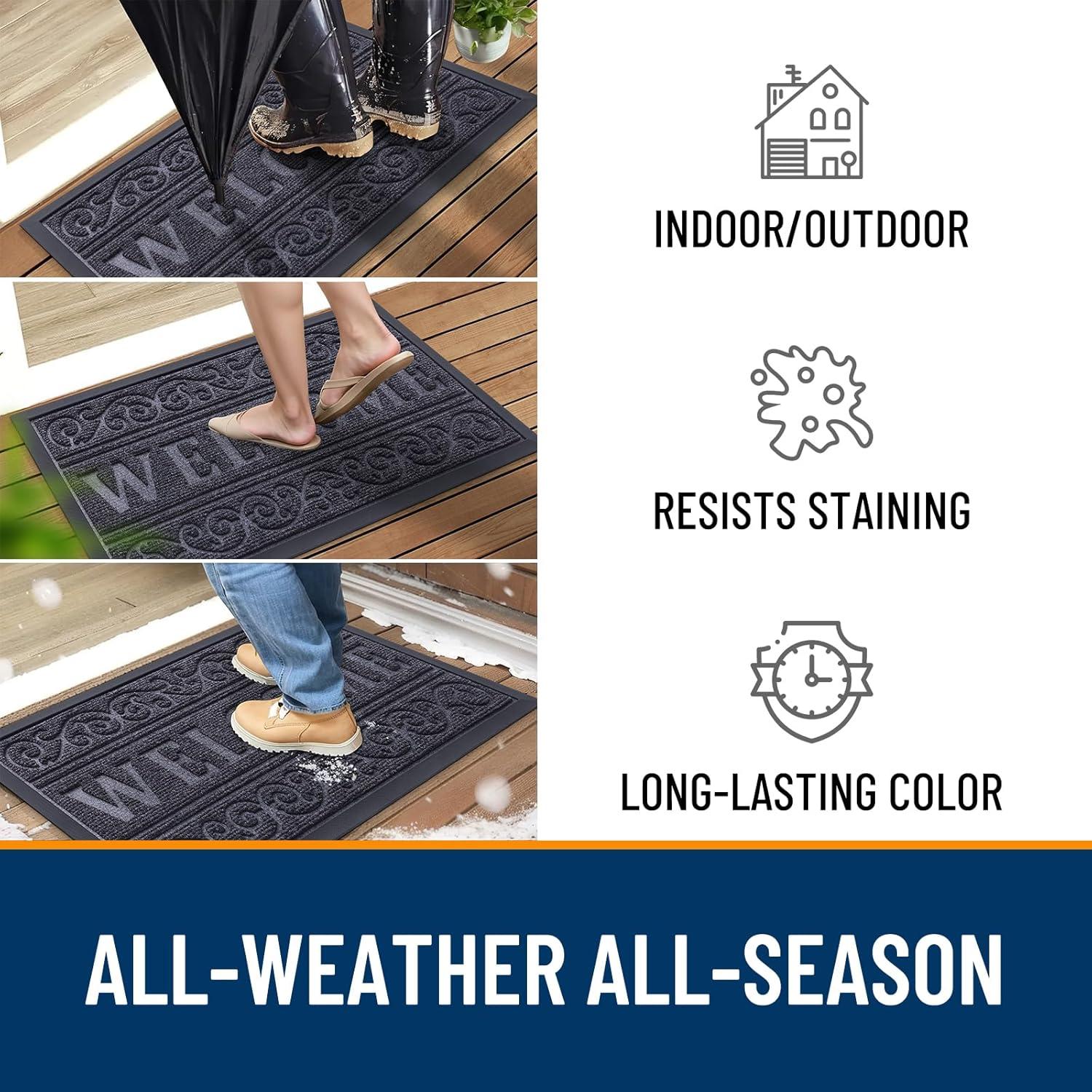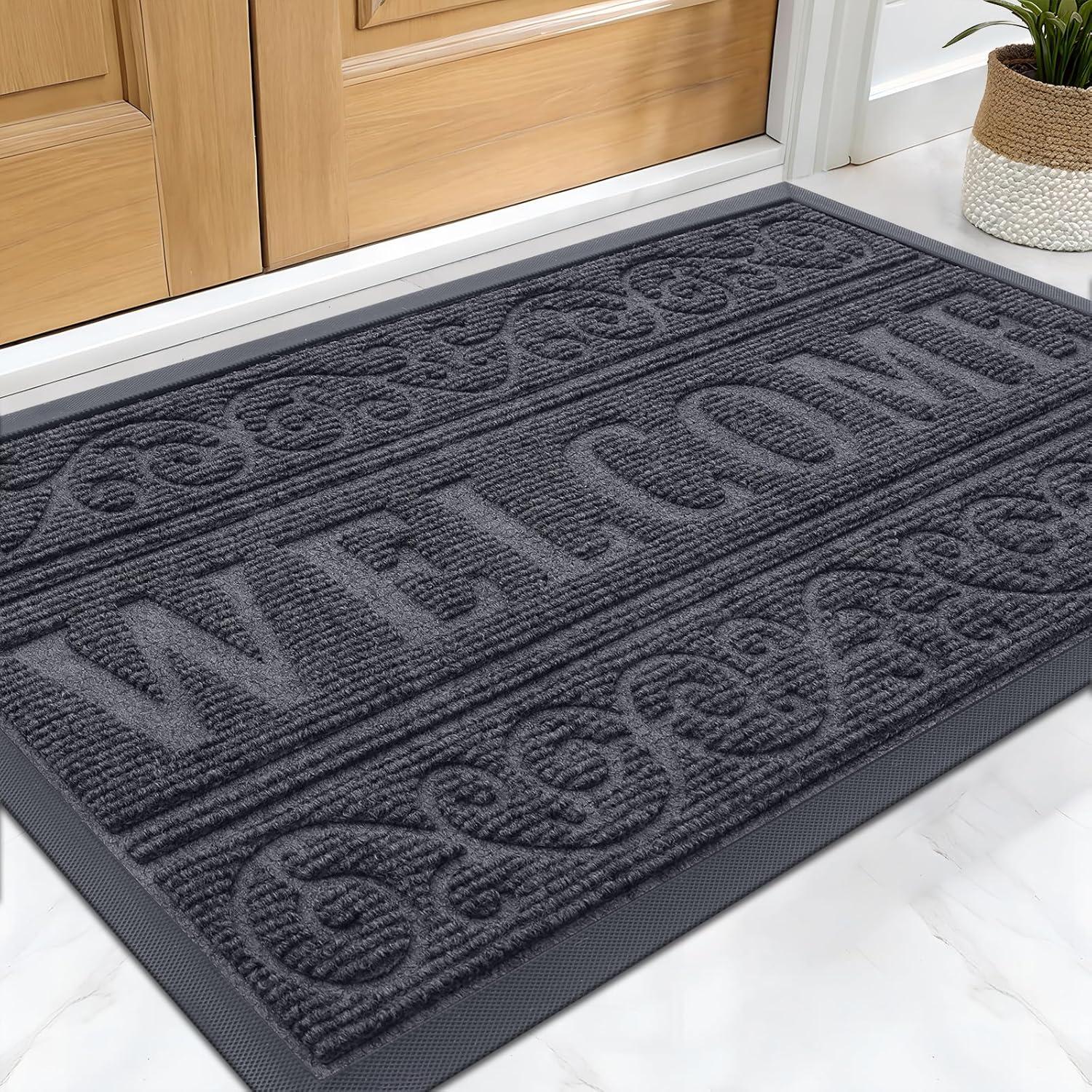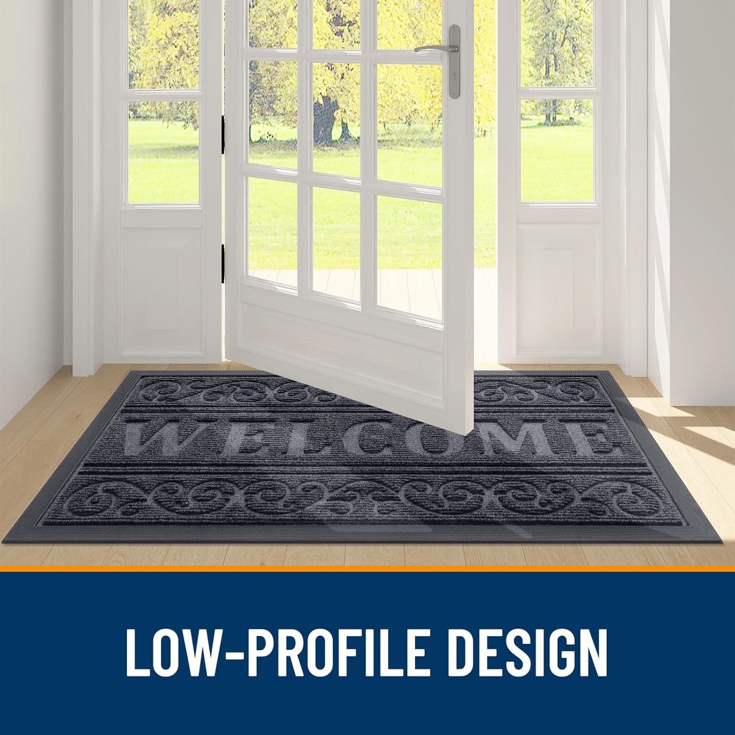 OLANLY Welcome Door Mat Indoor Outdoor Entrance, Heavy Duty Sturdy Front Door Mat, Waterproof All-Weather Doormat, Stain Resistant, Low Profile, Easy Clean Patio Entryway Mat, 29.5 x 17, Black(Grey)