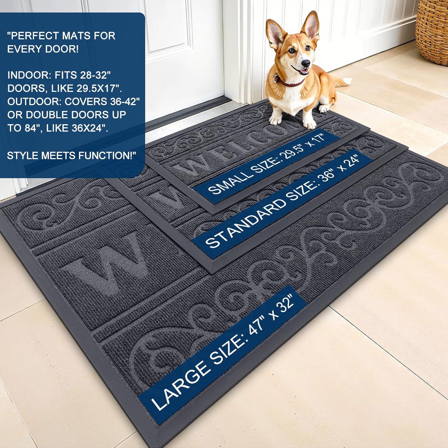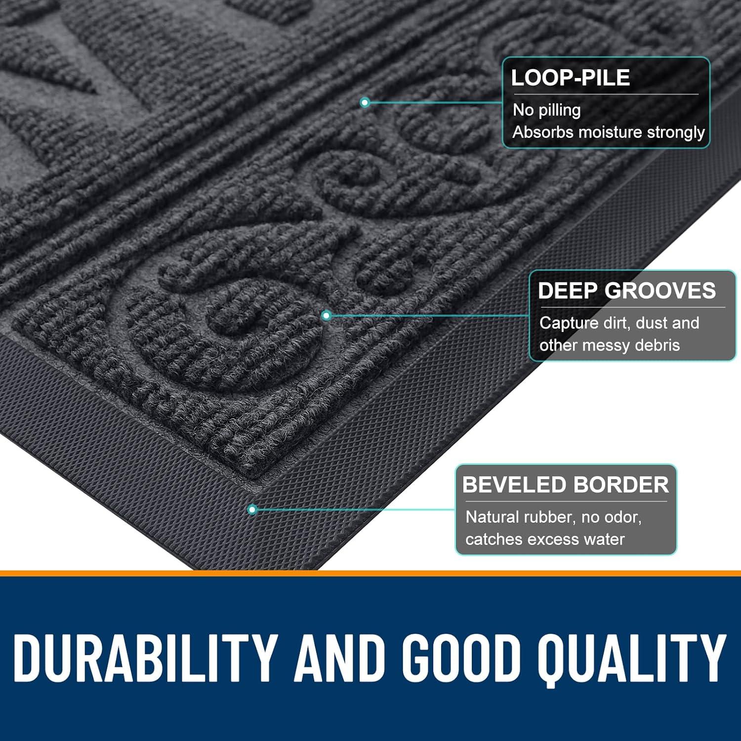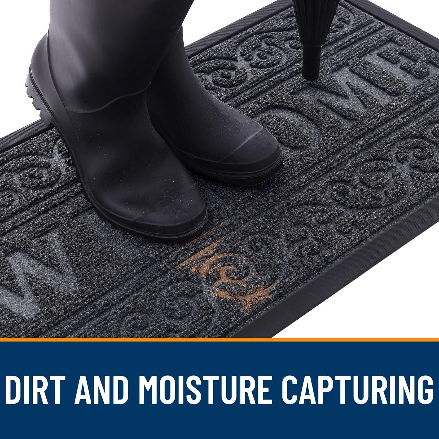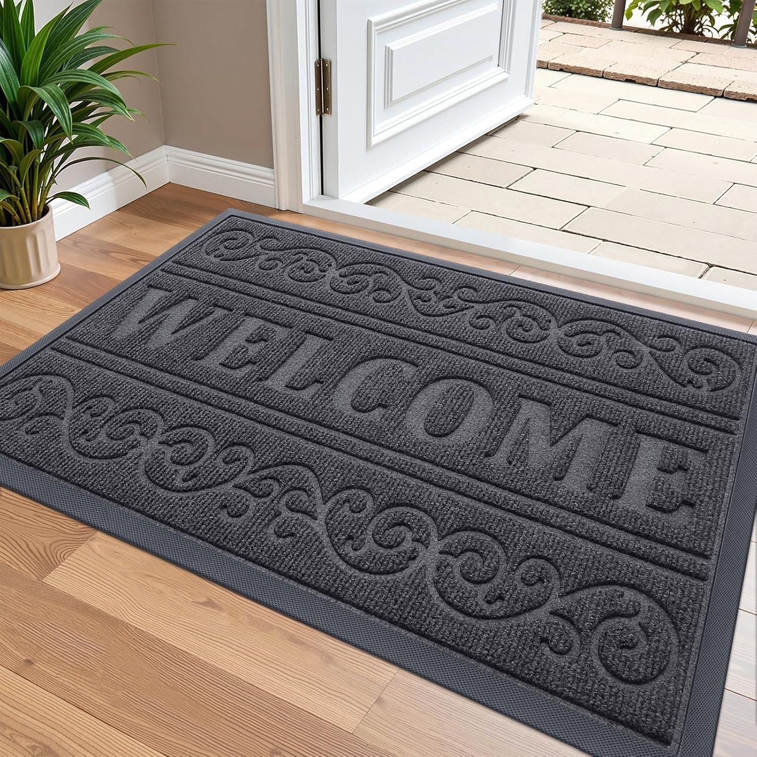 OLANLY Welcome Door Mat Indoor Outdoor Entrance, Heavy Duty Sturdy Front Door Mat, Waterproof All-Weather Doormat, Stain Resistant, Low Profile, Easy Clean Patio Entryway Mat, 29.5 x 17, Black(Grey)